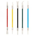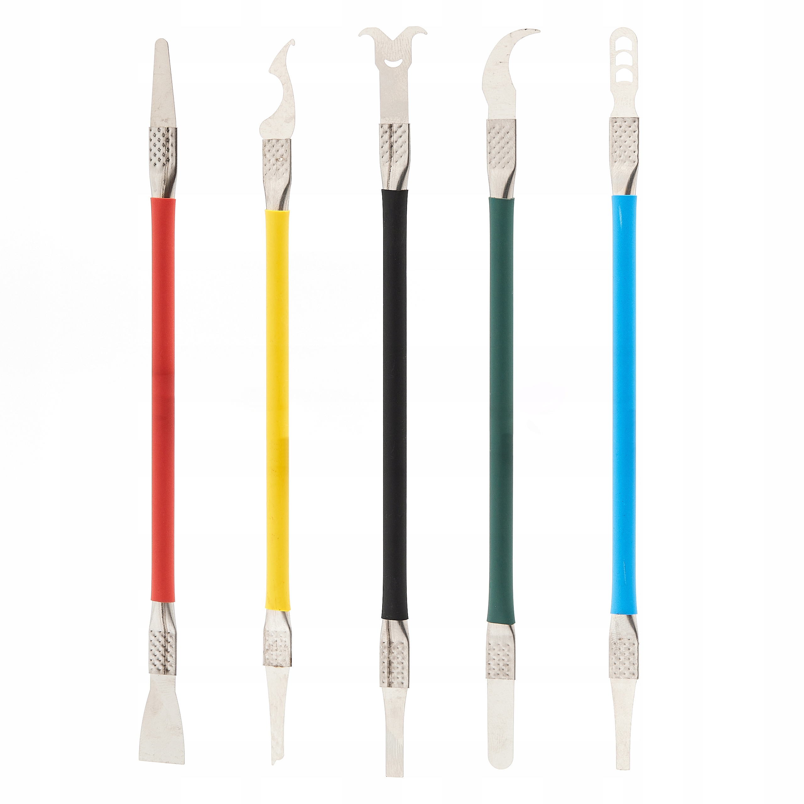 Zestaw metalowych elastycznych narzędzi ułatwiających lutowanie i czyszczenie płytek drukowanych z pozostałości cyny, kulek BGA, oraz kleju. Narzędzia wykonane z metalu, elastyczne dwustronne. Użytkownik ma do dyspozycji 10 różnych końcówek typu: tępe ostrze skalpel, skrobak, łopatka, szpatułka itp.