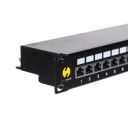 Network patch panel posiada złącza RJ45. Styki złącz są pozłacane. Zapewniają najwyższą jakość pracy dla >1200 cykli. Urządzenie zapewnia szybkie i niezawodne podłączenie urządzeń do sieci komputerowej. Gniazda są kompatybilne ze wszystkimi rodzajami patchcordów zakończonych wtykami RJ45 (np CAT5E, CAT 6, CAT 6A, CAT7). Najlepszy efekt uzyskuje się stosując patchcordy tej samej kategorii co urządzenie lub wyższej.