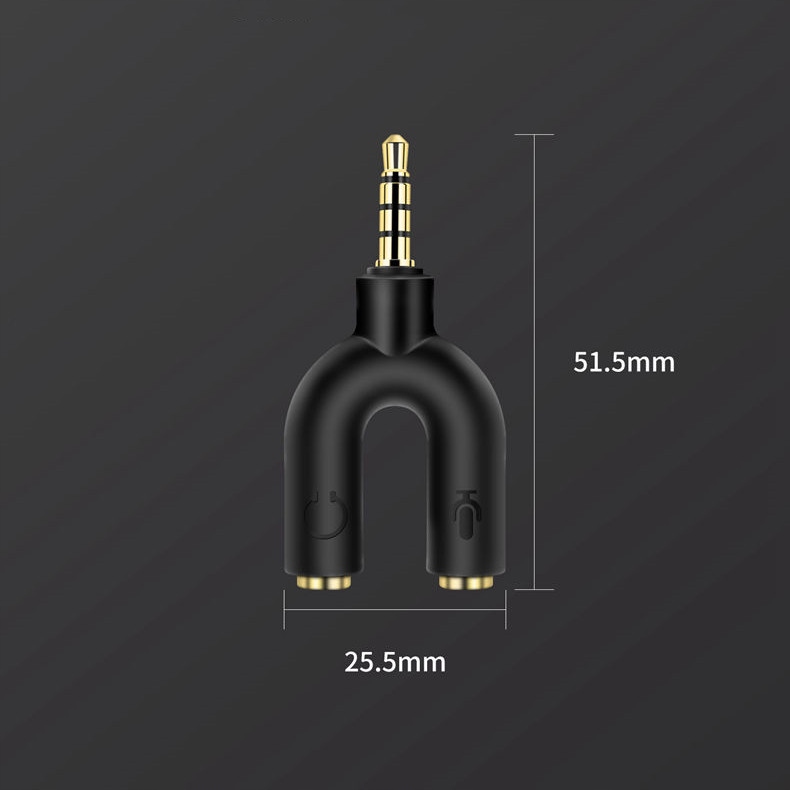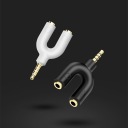 Rozdzielacz z gniazdami 2x 3,5mm 4-pin stereo + mikrofon, m. in. pod 2x słuchawki wyposażone w mikrofon! Kolor czarny.