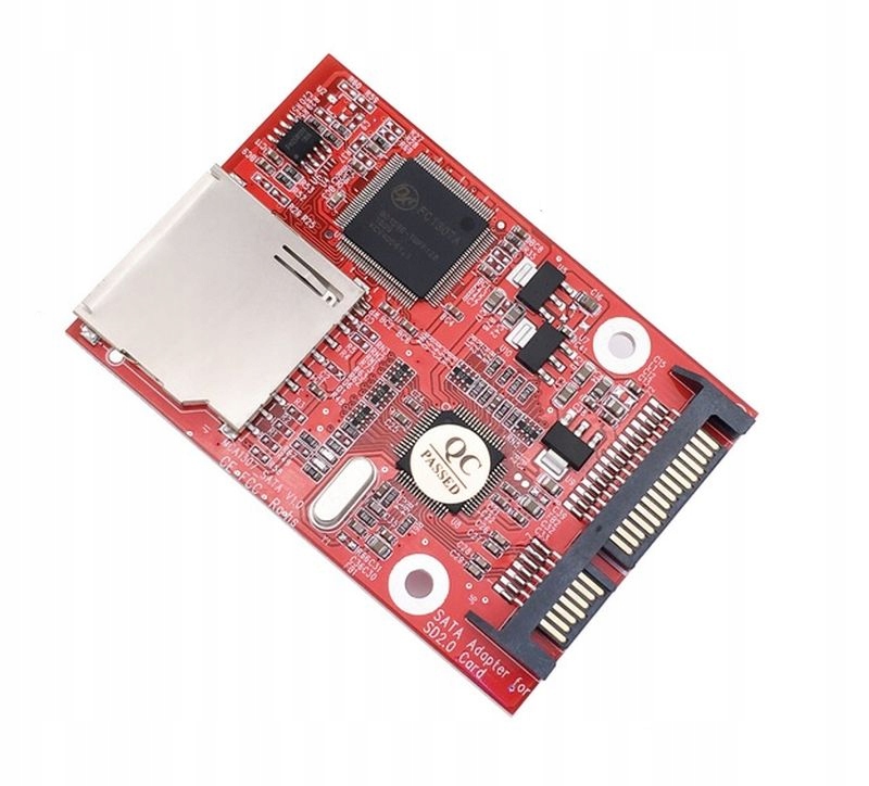 Adapter plug & play, nie wymagający żadnych serowników, pozwala na podłączenie karty SD / SDHC / SDXC dowolnej pojemności do komputera PC, przez port SATA. Karta SD działa jako dodatkowa pamięć masowa, a sytem operacyjny oprócz uruchamiania z dysku twardego, może zostać także uruchomiony z tej karty. Nie wymaga dodatkowego zasilania.