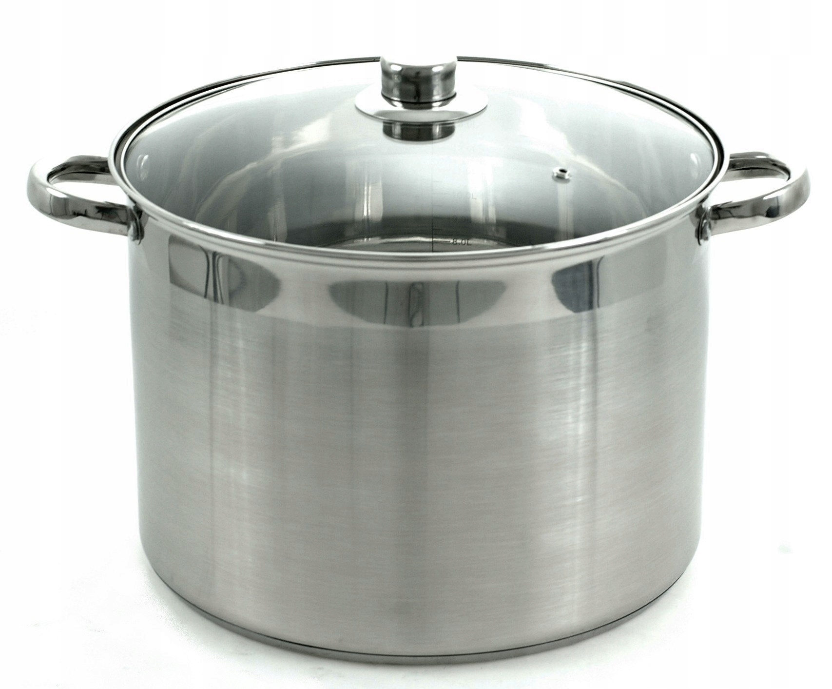 Pozostałe informacje: - garnek ze stali nierdzewnej, - wykończenie zewnętrzne satyna z paskiem w połysku, - wykończenie wewnętrzne: połysk, - skala litrażu, - pokrywa szklana ze stalowym rantem i odpowietrznikiem, - uchwyty garnka nitowane, - uchwyt pokrywy stalowy, przykręcany, - wysokość garnka bez pokrywy: 21,5 cm, - pojemność całkowita: 12 l, - pojemność użytkowa: 11,5 l