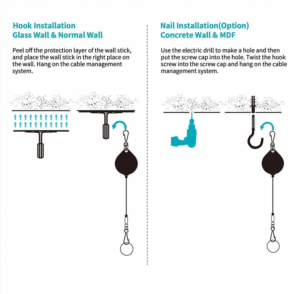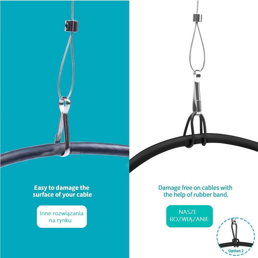 Główne cechy produktu: ✅ Nie ograniczają ruchu ✅ Obrotowe głowice ✅ Amortyzacja gwałtownych ruchów ✅ Zapobiega plątaniu się kabla pod nogami ✅ Łatwe w montażu i demontażu