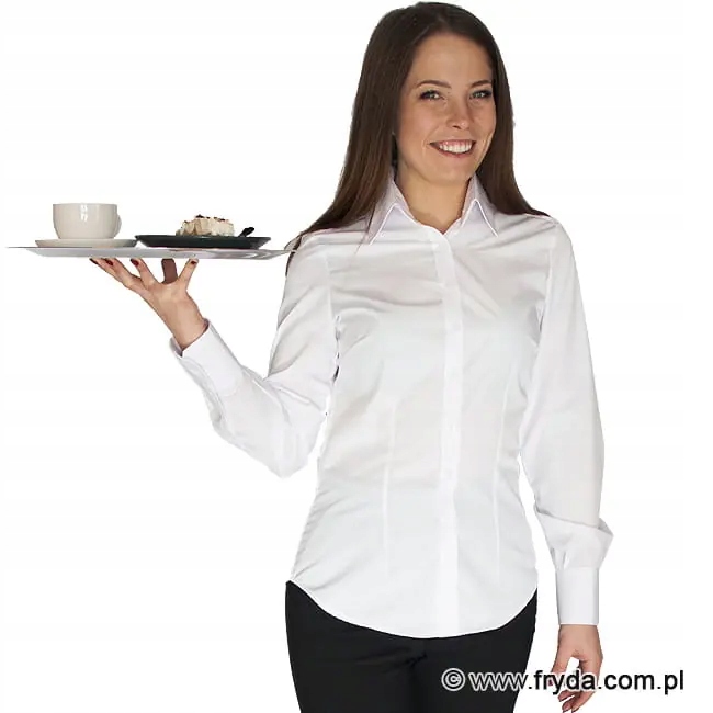 Białe bluzki kelnerskie z długim rękawem to klasyka, która zawsze świetnie wygląda i daje ogromne możliwości doboru różnych dodatków. Do białej bluzki można założyć czarną kamizelkę, spodnie lub spódnicę oraz zapaskę.