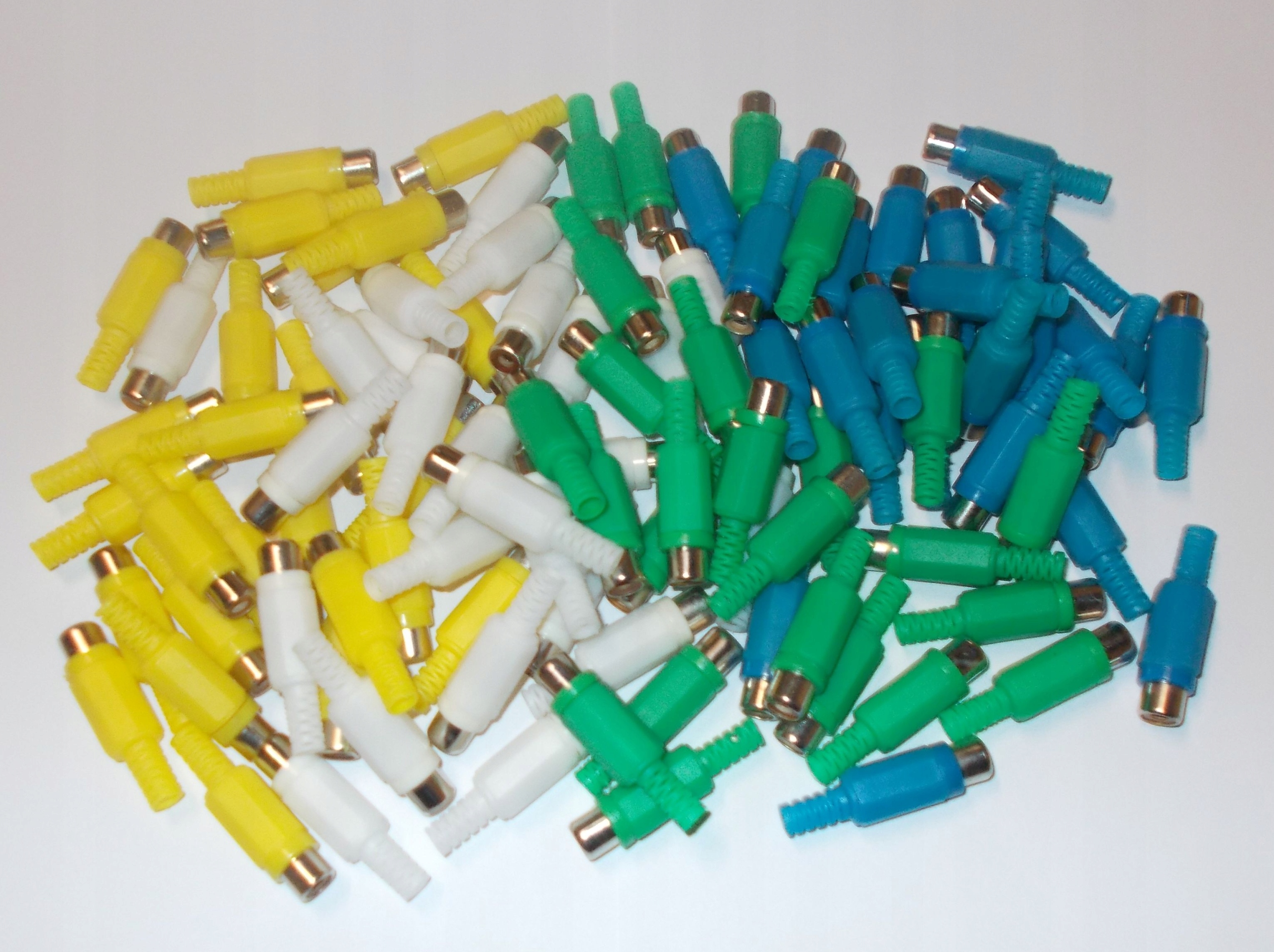 Komplet 100 sztuk gniazd RCA (cinch) na kabel po 25sztuk 4 kolorów: