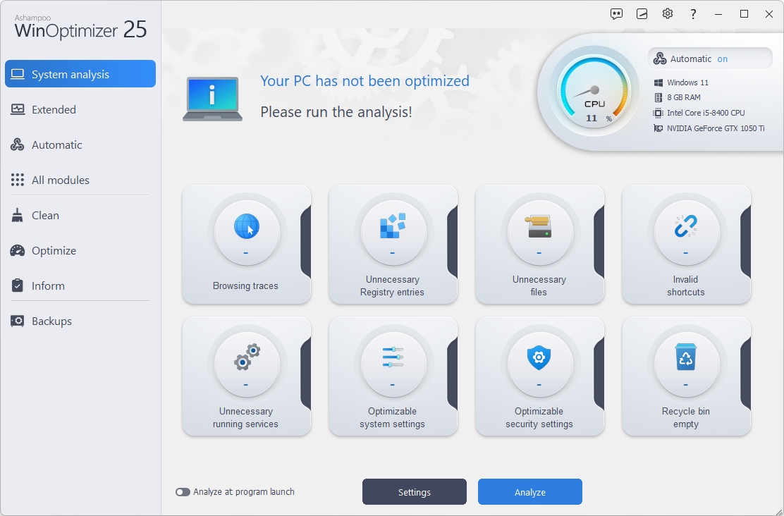 Windows jest wspaniały, ale zawsze jest coś, co można poprawić. Dlatego też Ashampoo WinOptimizer 25 przychodzi z pomocą! Ponieważ, przez cały czas pracy systemu, staje się on wolniejszy, mniej stabilny i obciążony. Ważne ustawienia czasem są pogubione w rejestrze lub plikach systemu. Dodatkowo nieustanne monitorowanie, zwane "telemetrią", to kolejny problem systemów Windows 10 i 11. WinOptimizer 25 kładzie kres takim działaniom szybko, łatwo i wydajnie! Dzięki temu Twój PC stanie się jak nowy w kilka chwil. Pozwól WinOptimizer oczyścić, zoptymalizować i ochronić Twój komputer w przyjemny sposób, dodając bezpieczeństwa Windows PC oraz prywatności, tak w pełni!
