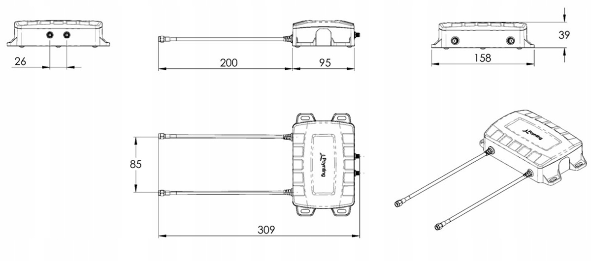 - Straty kabla koncentrycznego: 0,535 dB/m przy 900 MHz 0,76 dB/m @ 1500 MHz, 0,79 dB/m @ 1800 MHz, 0,97 dB/m przy 2400 MHz, 1,1 dB/m przy 3000 MHz, 2,0 dB/m przy 5800 MHz - Wymiary produktu: 95 x 158 x 39 mm