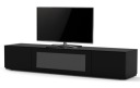 Nowoczesna szafka audio video, meble Tureckiego producenta SONOROUS. Konstrukcja stolika wykonana z płyty MDF, wykończona okleiną winylową w kolorze czarnym. Szklany blat szafki, zapewnia nam pięć razy wyższą odporność na zarysowania lub stłuczenie niż zwykłe szkło. Szkło zastało polakierowane od spodu, na czarno. Front wykonany został ze szkła przyjaznego dla sygnału podczerwieni (IR), oznacz to możliwość obsługiwania urządzeń za pomocą pilota bez konieczności otwierania szafki. Miejsca na elektronikę zapewnia sześć półek, z dostępem odpowiedniej wentylacji oraz systemem zarządzania kablami, co pozwala aby umieszczony sprzęt audio video, pracował w optymalnych warunkach. Charakterystyczna dla tego stolika jest, jego blat o długości 200 cm, na której można ustawić duży telewizor. System otwierania i zamykania - front zamocowany da dwóch siłownikach, a boczne szafki na zawiasach "Push to open", zintegrowanym cichym domykaniem, dla jeszcze większego komfortu podczas zamykania i otwierania drzwi szafki.