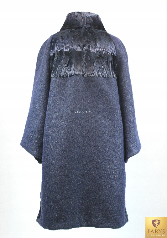 Rękawy oraz część pleców wykonane z tekstylnego materiału zapewniają komfort noszenia i lekkość, a naturalne futro karakułów dodaje wyjątkowego charakteru i prestiżu.