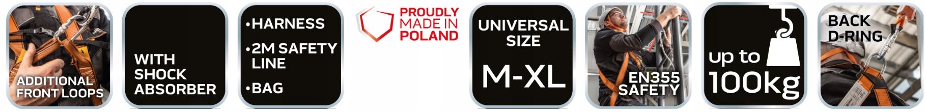 Zestaw ten określany jest jako obowiązkowy w zawodach, które wymagają pracy w warunkach podwyższonego ryzyka na wysokościach.