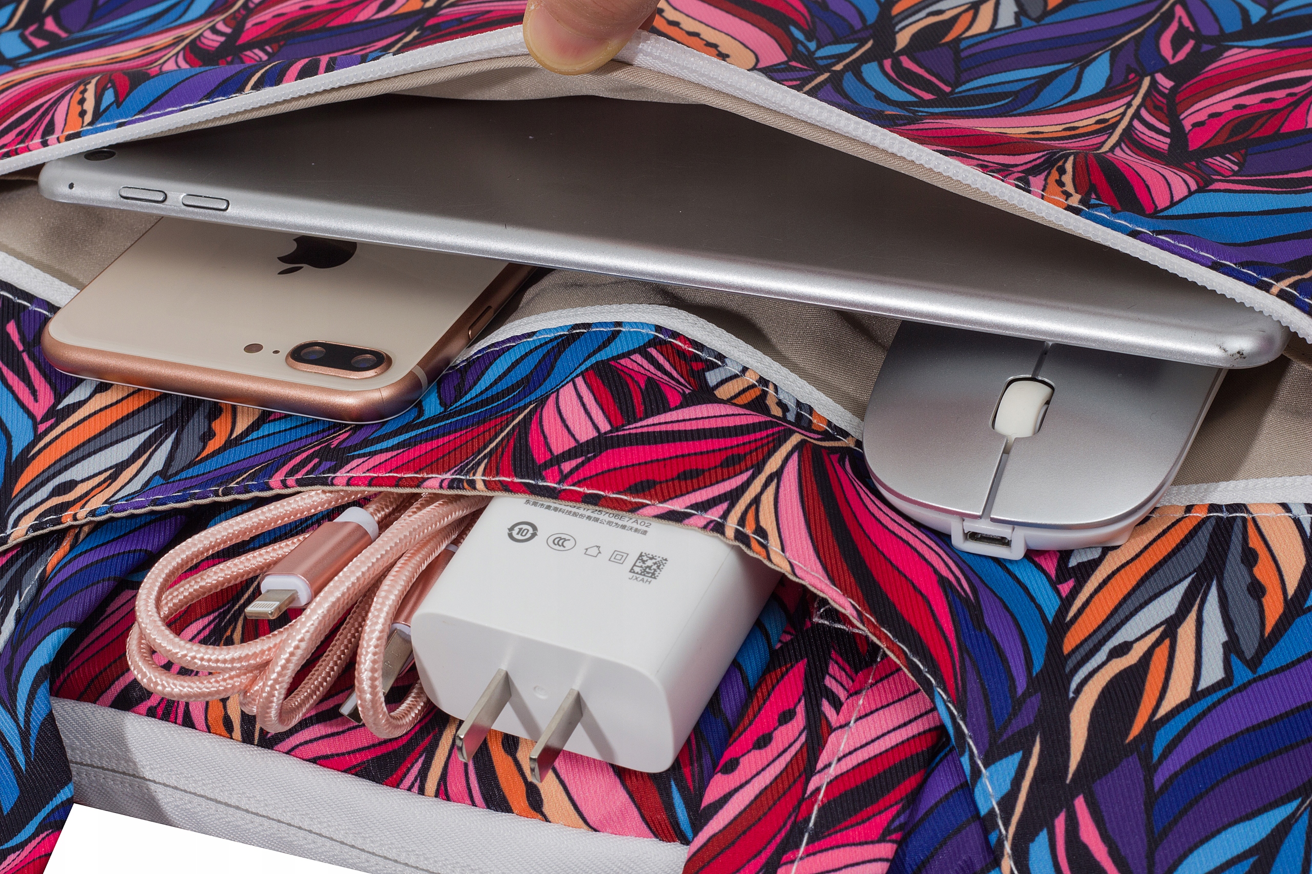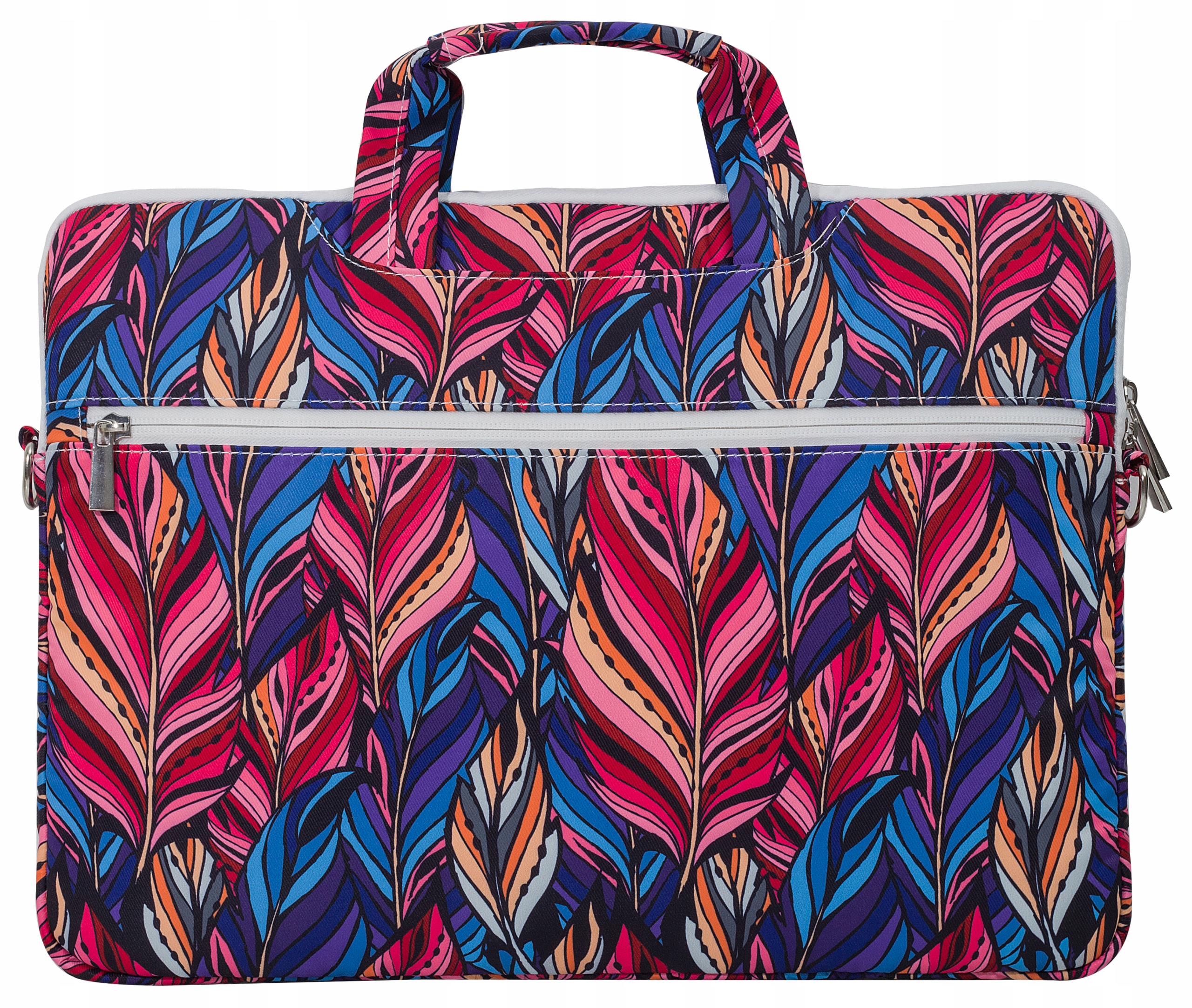 Etui zostało wyposażone w wygodne rączki oraz pasek na ramię. Posiada komorę na laptopa oraz dodatkową kieszeń boczną zamykaną na zamek błyskawiczny.