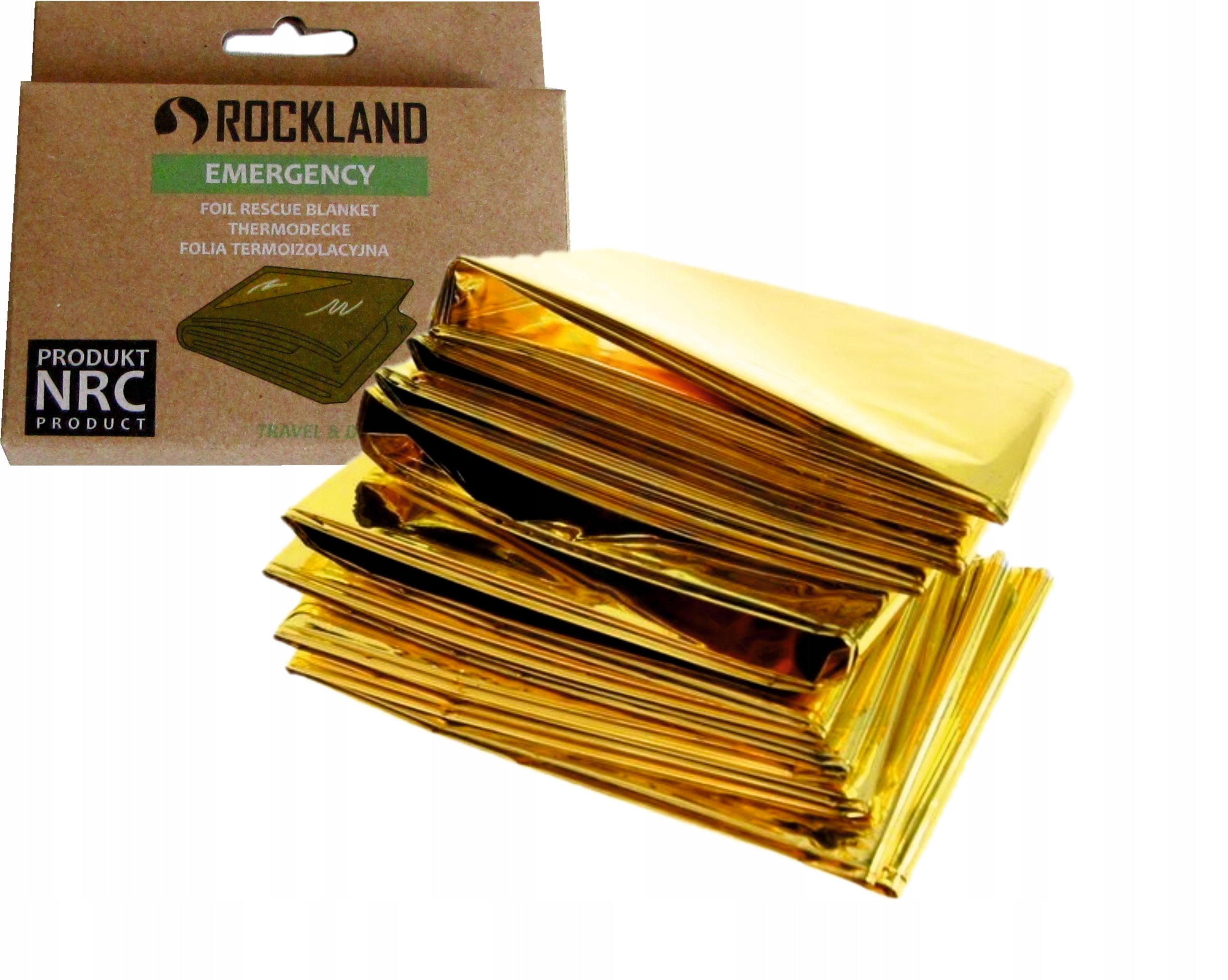 Duży koc termiczny - folia NRC, która odbija ponad 80% ciepła emitowanego przez ciało. Znajduje zastosowanie praktycznie w każdych warunkach, a z racji minimalnych rozmiarów i wagi powinien znaleźć się w zestawach ratunkowych i apteczkach tak w samochodzie, jak i w plecaku, np: