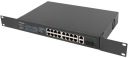 Switch został wyposażony łącznie w 18 portów, w tym 16 porty PoE+ (Fast Ethernet) oraz 2 Uplink (Combo Gigabit). Przemyślana konstrukcja i dbałość o jakość komponentów zapewnia użytkownikowi aż do 250 W całkowitej realnej mocy dla urządzeń końcowych, co oznacza możliwość podłączenia równocześnie: