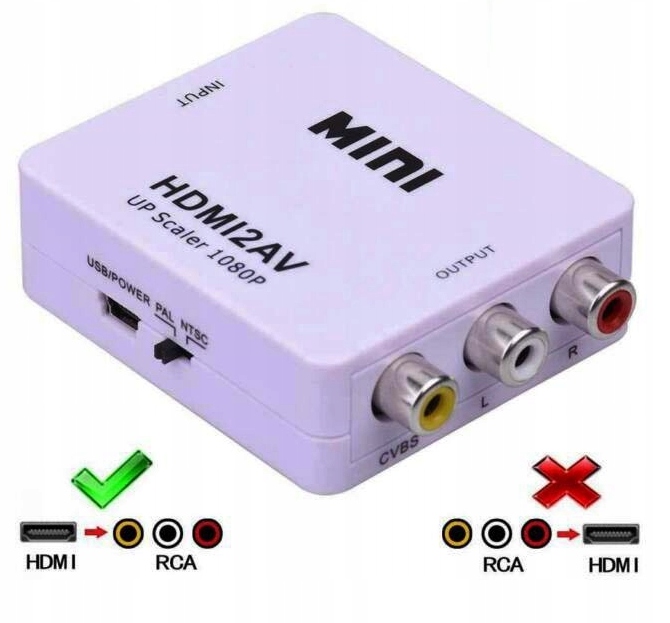 Przejściówka pomaga uzyskać konwersję sygnału TYLKO HDMI na AV. Przejściówka nie działa dwukierunkowo. Nie ma możliwości konwersji sygnału AV na HDMI !
