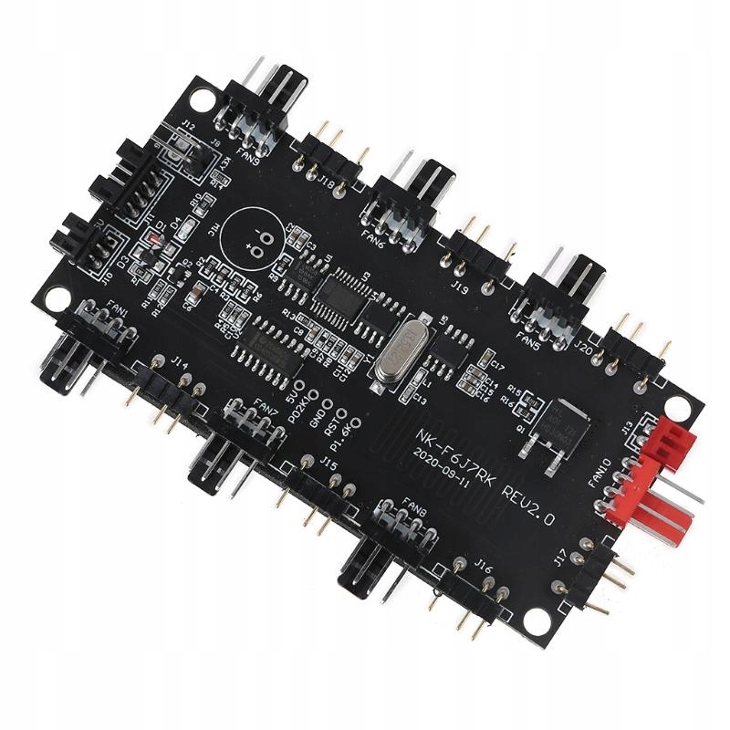 Разветвитель концентратора используется для распределения сигналов PWM и aRGB. Может посылать сигнал до максимума семь вентиляторов или компонентов aRGB. Он совместим с 3-контактными и 4-контактными вентиляторами, а также элементы aRGB с 3-контактным разъемом aRGB 5V. питание подается от порта SATA. Красный разъем используется для подключения вентилятора процессора. Управление как с пульта дистанционного управления для компьютеров без возможности управления подсветкой aRGB и с материнской платы, оснащенной технологиями AURA takich jak (MSI Mystic Light, Asus AURA, GIGABYTE RGB Fusion 2.0). Одна настройка на пульте дистанционного управления синхронизирует работу всех вентиляторов и элементов eRGB. Также к распределителю можно подключить другие продукты aRGB, такие как: светодиодные полосы aRGB или подсветка водяного охлаждения. На задней части адаптера есть клейкая лента, которая легко и надежно приклеит пластину к корпусу компьютера. В комплекте есть кабели питания SATA, PWM и aRGB для подключения к материнской плате.