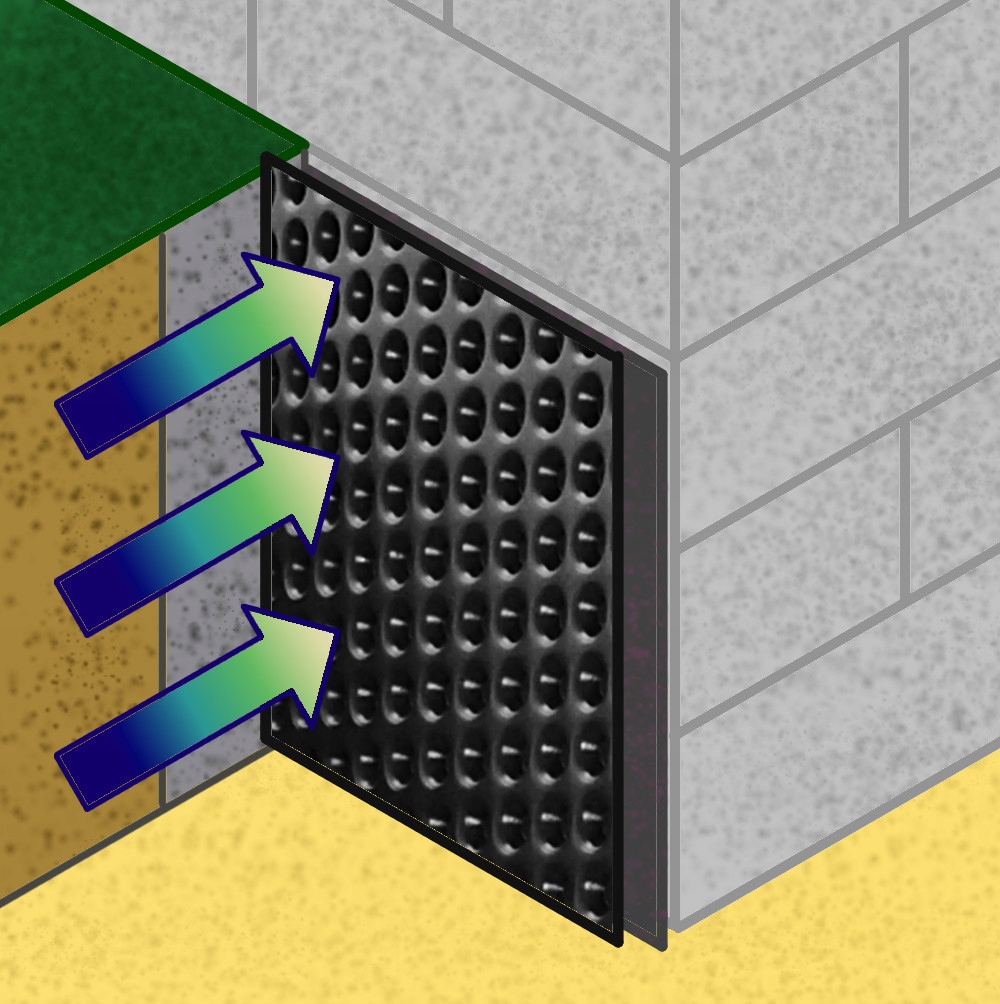 Idea pracy tej membrany oparta jest na wykorzystaniu szczeliny powietrznej, powstałej pomiędzy konstrukcją budynku, a izolacją. Szczelina ta zapewnia odprowadzenie wody i pary wodnej, co pozwala zabezpieczyć materiały budowlane przed nadmierną wilgocią i przed tworzeniem się ciśnienia hydrostatycznego. Folia przeznaczona jest do zabezpieczenia zewnętrznej izolacji przeciwwilgociowej fundamentów, ścian przed uszkodzeniem mechanicznym w czasie zasypywania wykopów i osiadaniem ziemi. Doskonale sprawdza się też jako zabezpieczenie izolacji tarasów, stropów, stropodachów i podłóg. Dodatkowo poprawia izolację termiczną i akustyczną
