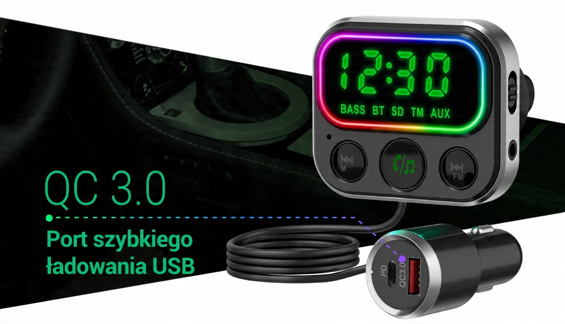 FM-передатчик очень практичен, так как позволяет слушать музыку, а также может использоваться в качестве зарядного устройства. Подключите смартфон или другие устройства к USB-разъемы Fast Charge с помощью USB-кабеля и заряжайте их на высокой скорости с помощью разъема автомобиль. Технология Fast Charge гарантирует чрезвычайно быструю зарядку-быстрее, чем в случай обычных технологий зарядки.