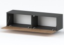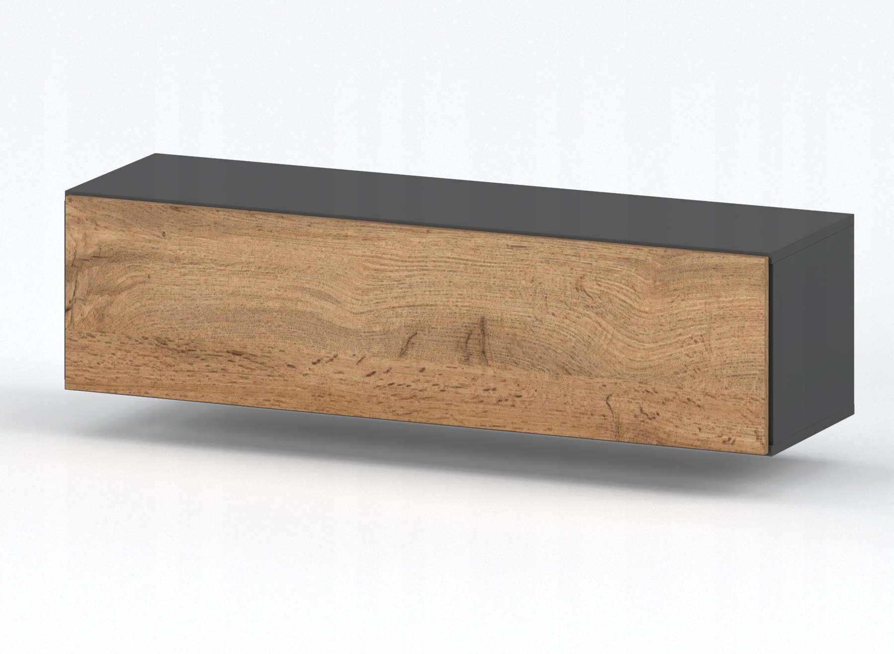 W każdym salonie i sypialni potrzebna jest szafka RTV z odpowiednia ilość miejsca na schowanie przeszkadzającego sprzętu, kabli czy na postawienie dekoracyjnego kwiatka, który urozmaici wygląd pomieszczenia. Nasz nowoczesny styl szafki o szarym korpusie, a froncie wykonanym z dębu wotan przyciągnie zainteresowanie przez odwiedzających Cię gości tworząc pozytywne pierwsze wrażenie. W wiszącej szafce rtv możesz przechowywać ubrania, sprzęt agd, dokumenty oraz biżuterie.