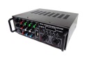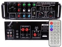 Wzmacniacz posiada dwa wejścia mikrofonowe oferując niezłą zabawę karaoke. Dzięki wejściu USB i SD odtwarzać możemy pliki z muzyką w formacie mp3.