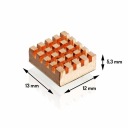 AABCOOLING Ram Heatsink 2 to niewielkie radiatory na pamięci kart graficznych oraz innych elementów elektronicznych, które potrzebują wydajnego chłodzenia pasywnego. Producenci modułów pamięci stosują różnego rodzaju mniej wydajne radiatory seryjne lub nie stosują ich wcale. W przypadku podkręcenia przy zwiększonym napięciu na układach wydzielają się duże ilości ciepła, które musi być wydajnie odprowadzone, tak aby sprzęt pracował optymalnie i stabilnie. Produkt wykonany z wysokiej jakości miedzi zapewniający efektywny transfer ciepła całą powierzchnią radiatorka. Do radiatorków przyklejona jest samoprzylepna taśma zapewniająca doskonałe przyleganie do układów na których radiator został zamontowany.