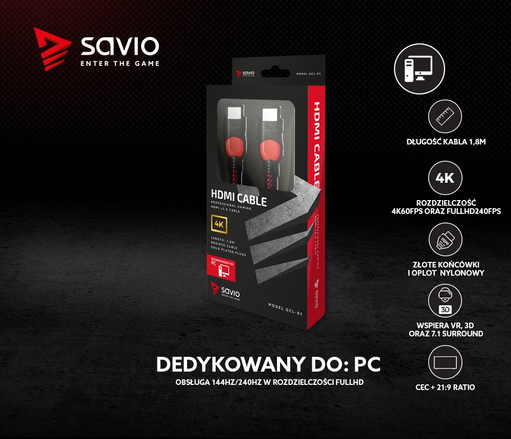 - Długość kabla 1,5 m