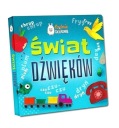 Świat dźwięków to publikacja podzielona na działy tematyczne - W domu, Sprzęty, Pojazdy, Przyroda wokół mnie, Dzikie zwierzęta. Na każdej stronie książki znajduje się duża i wyraźna, kolorowa ilustracja przedstawiająca zwierzę, przedmiot lub zjawisko z otoczenia dziecka oraz towarzyszący mu dźwięk, który maluch może powtarzać i uczyć się kojarzyć go z rzeczywistymi obiektami. Dzięki szerokiemu przekrojowi zaprezentowanych dźwięków książka rozszerza wczesne dziecięce możliwości komunikacji w najciekawszy i najbardziej naturalny dla maluchów sposób, a przede wszystkim jest dla malca nieocenionym źródłem inspiracji, informacji i radości.