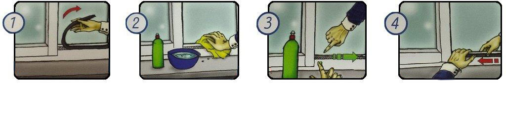 Перед установкой прокладки необходимо промыть раму и створку окна водой с жидкостью, для удаления скопившейся грязи (фото № 2).