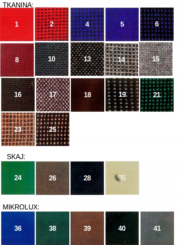 Материал обивки inne (tkanina, skóra naturalna, ekoskóra, mikrolux)