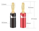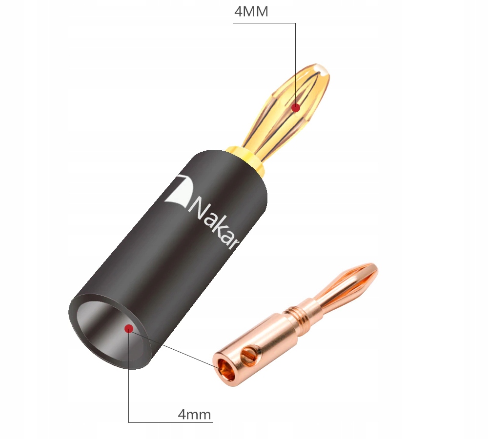 Konstrukcja wtyku bananowego została zaprojektowana tak, aby móc zagwarantować najwyższą jakość i najlepsze brzmienie audio. Złącze wykonano ze stopu miedzi beztlenowej OFC, która została pozłocona 24 karatowym złotem!