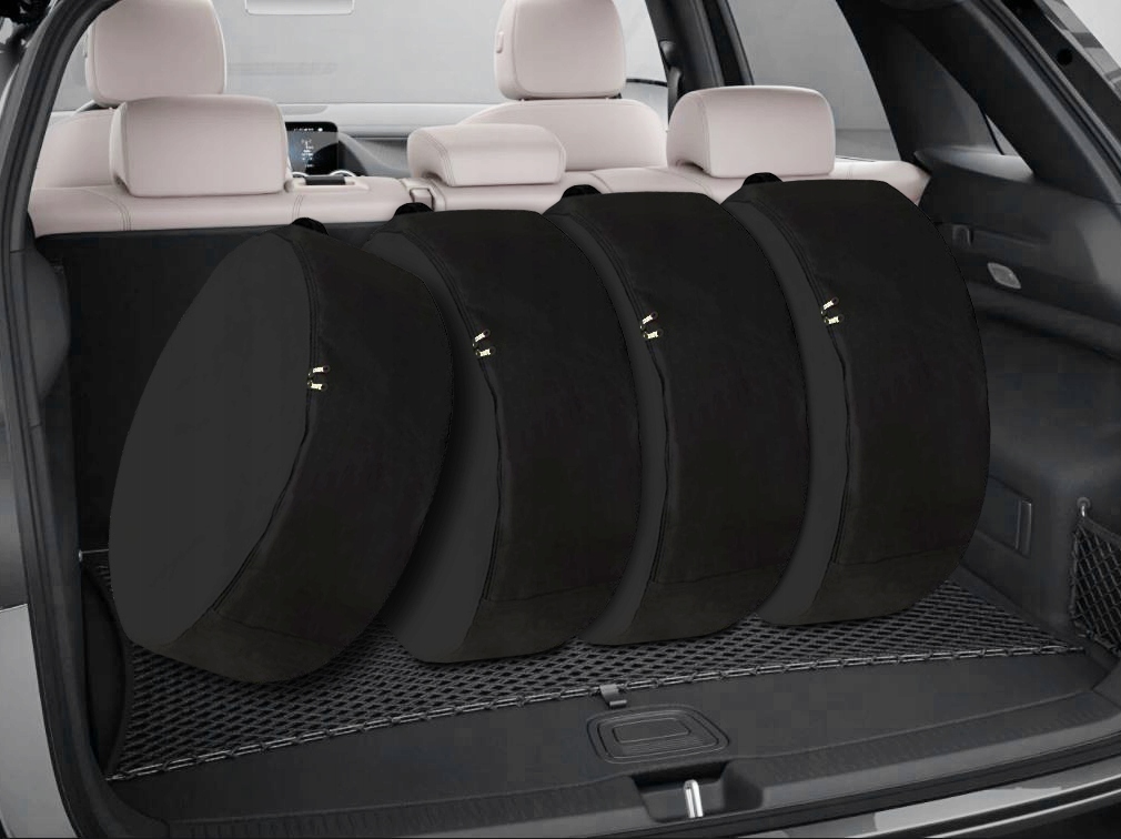 Pokrowiec zabezpiecza koła przed zabrudzeniami, jest bardzo łatwy w czyszczeniu, wodoodporny i wytrzymały. Pokrowiec jest również skutecznym zabezpieczeniem powierzchni bagażnika przed zabrudzeniem podczas przewożenia kół