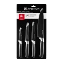 Eleganckie noże z czarnym ostrzem wykonane z wysokiej jakości stali nierdzewnej. Ergonomiczna rączka Soft Touch zapewnia wygodny i stabilny chwyt.