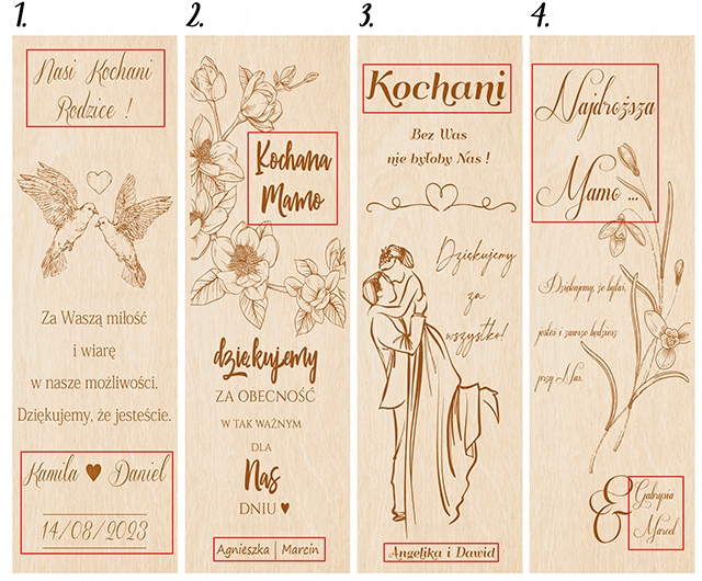 *Istnieje możliwość wprowadzenia zmian poza zaznaczonymi miejscami np. w wypadku zmiany liczby mnogiej na pojedynczą, formy męskiej na żeńską lub odwrotnie. Przy zakupie usługi dodatkowego graweru (dostępnej na naszych innych aukcjach) możemy tekst ze wzoru zastąpić tekstem podanym przez kupującego. Należy wówczas pamiętać, że ilość znaków przesłanego przez klienta powinna odpowiadać ilością znaków tekstu ze wzoru.