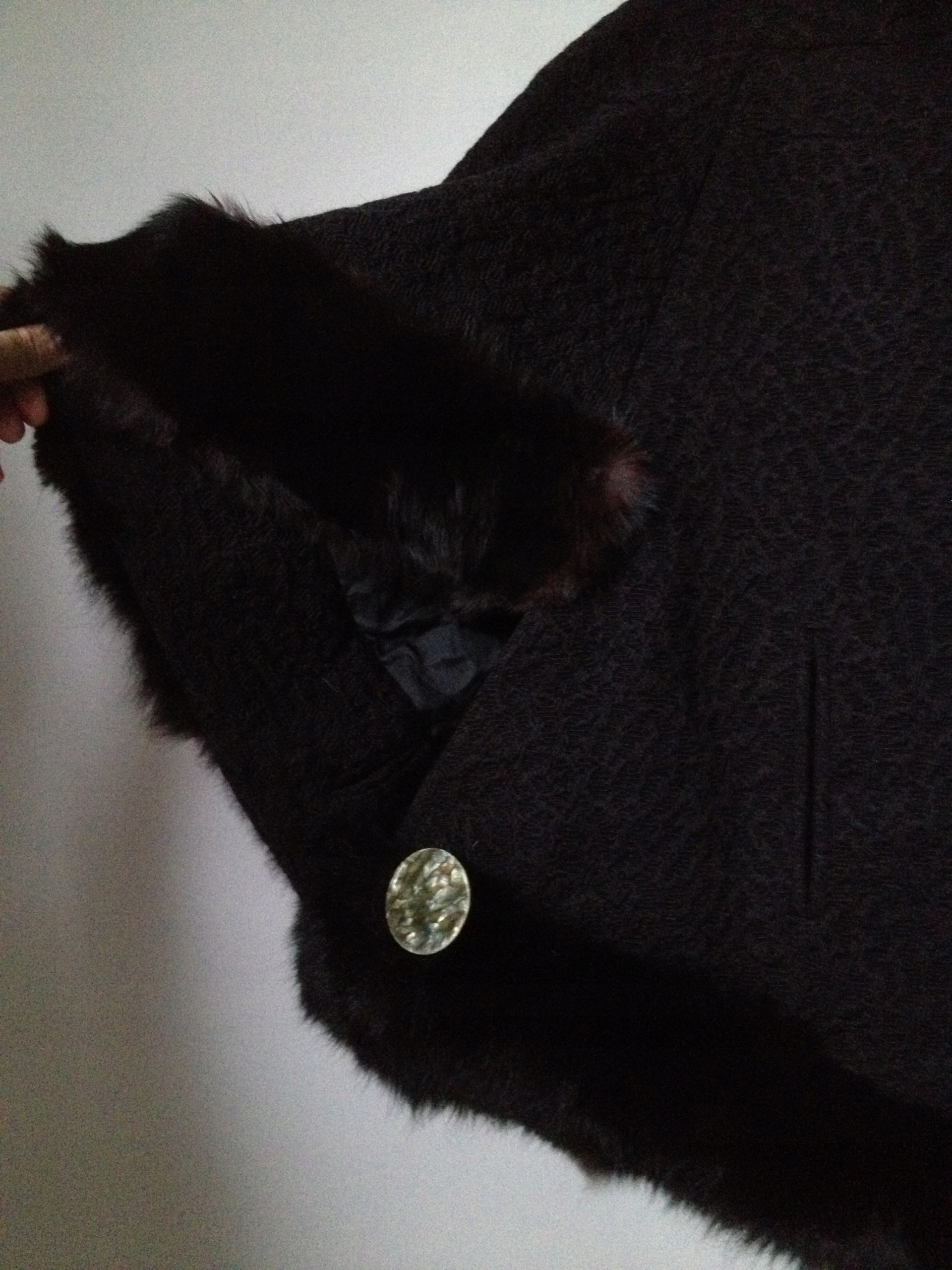 Ponczo nie jest lekkie - gruby materiał z podszewką i dużo naturalnego futra.