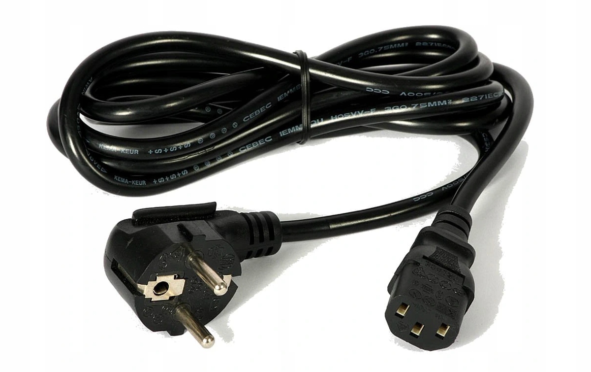 KABEL ZASILAJĄCY 3 Metry 3x0,75 10A 250 V, stosowany jako kabel zasilający do komputerów stacjonarnych (ATX) , zasilacza awaryjnego UPS, monitora, drukarki, skanera, faksu, telewizora itp.
