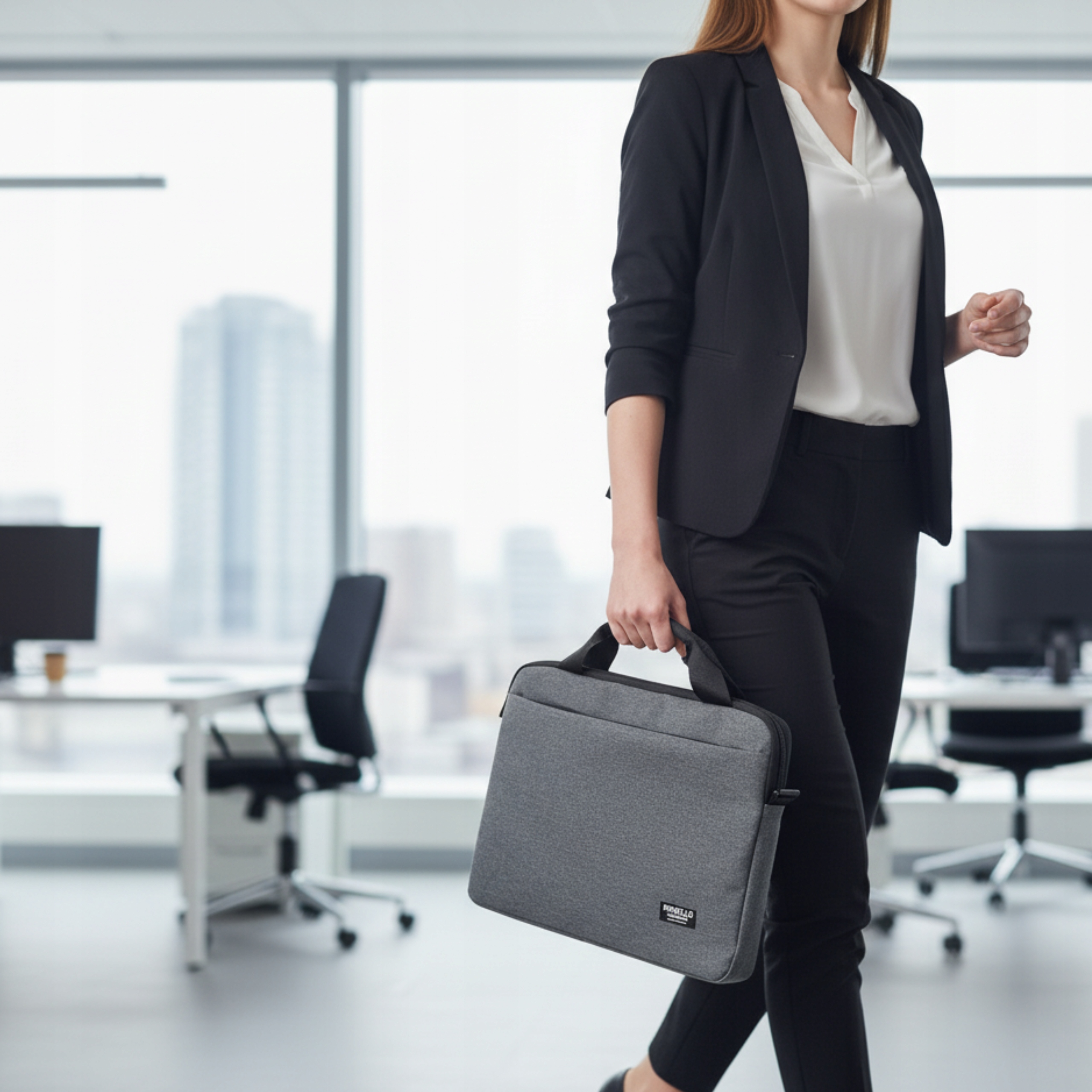 ⚙️ Materiał wierzchni torby podszyty jest specjalistyczną gąbką, dzięki której laptop powinien być bezpieczny nawet podczas upadku torby. Nie musisz się też obawiać, że podczas uderzenia w torbę uszkodzisz swój komputer.