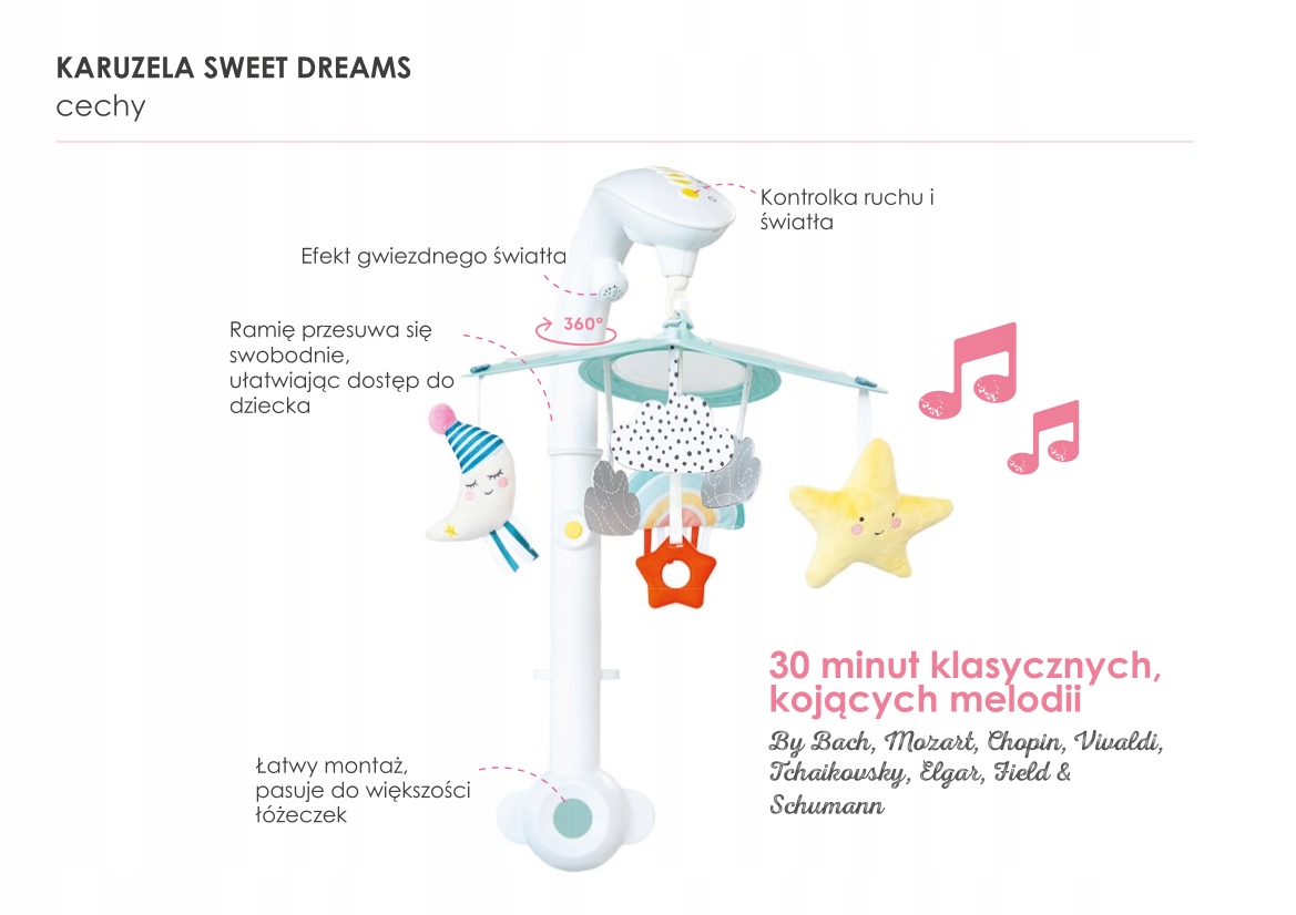 Карусель сладких снов Mini Moon от Taf Toys-идеальное решение, чтобы успокоить вас ребенок и ввести их в мир мечты! Благодаря 30 минутам уникальных классических мелодий, специально подобранный для младенцев, ваш малыш будет чувствовать себя расслабленным и безопасным. Z элегантный бутик-вид, карусель прекрасно впишется в современный декор комнаты детей, предлагая увлекательные звуки, движения и огни, которые стимулируют развитие чувств и эмоциональный интеллект. 🌟