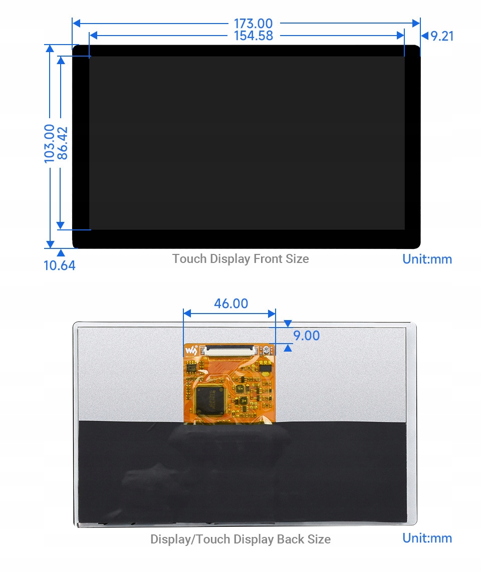 The 70H-1024600 series display, designed by Waveshare Team, is for customers who need a lightweight HDMI display. As it is thinner and lighter than any traditional HDMI display, users can do the second development by themselves easily.