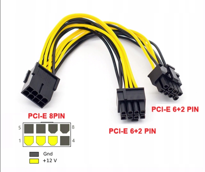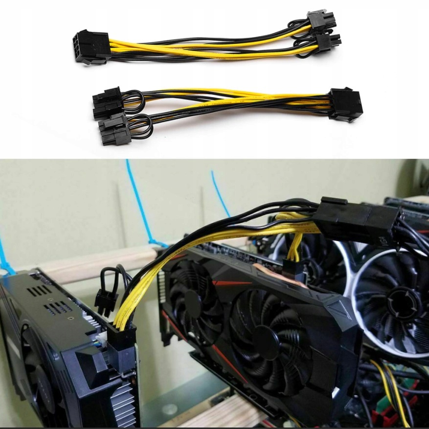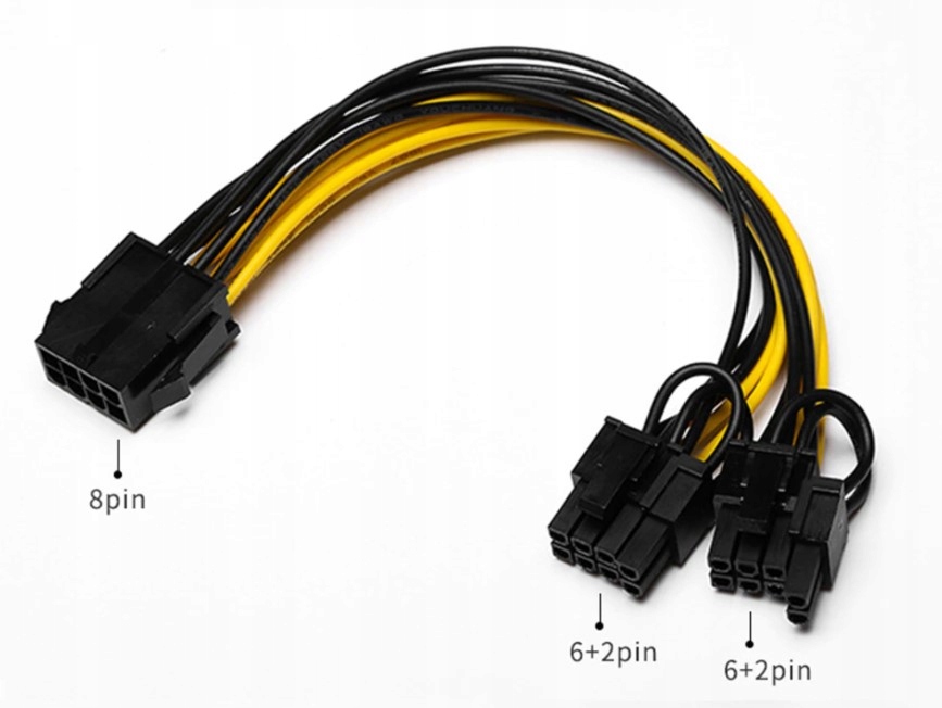 Przejściówka do zasilania 6pin na 2x8pin do zasilania m.in. kart graficznych,