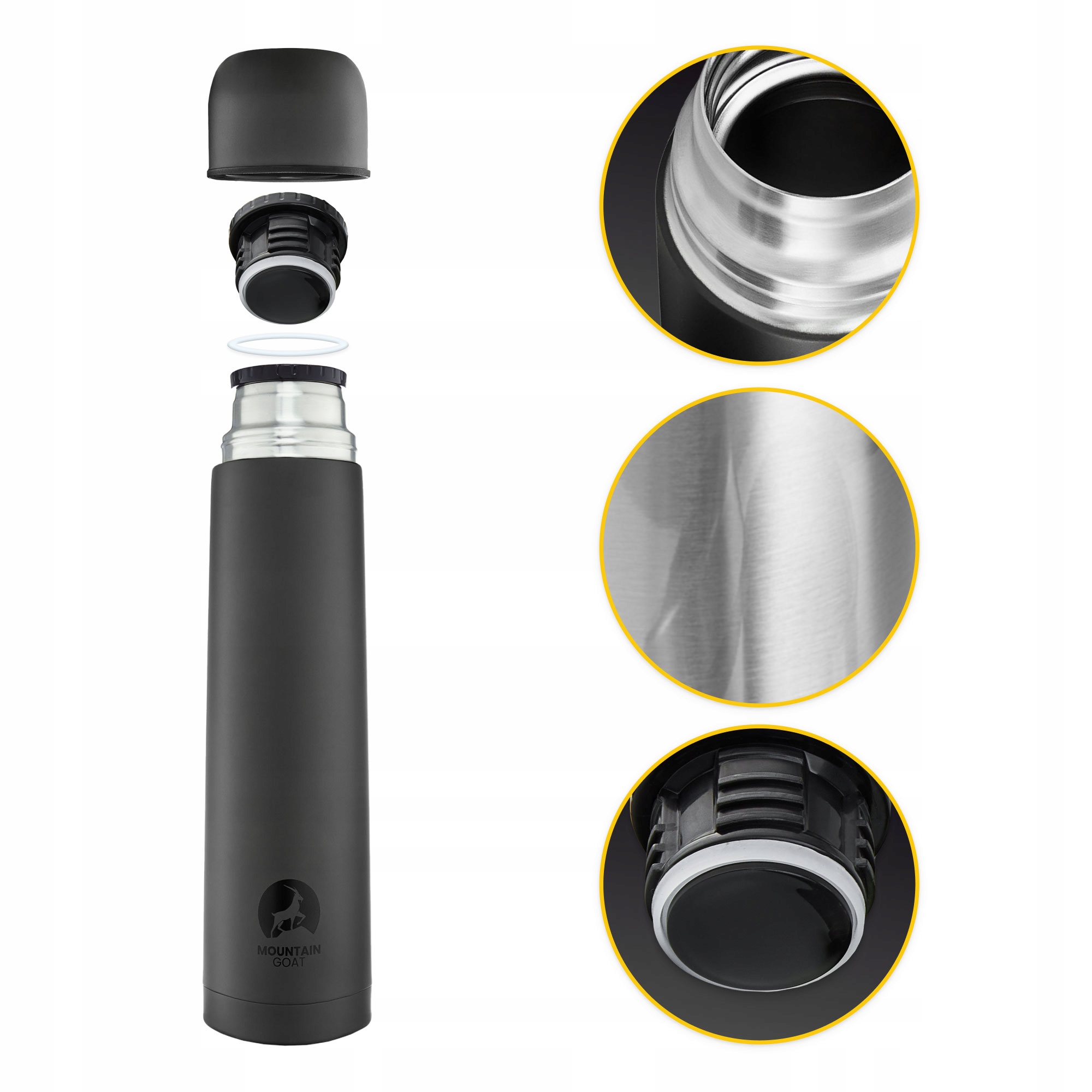 Туристический вакуумный термос MOUNTAIN GOAT с двойными стенками Благодаря этому вы достигнете чашки горячего напитка даже после нескольких часов походов высоко в горы. И это просто типичное удовольствие-ваш любимый горячий кофе на вершине с прекрасный вид!