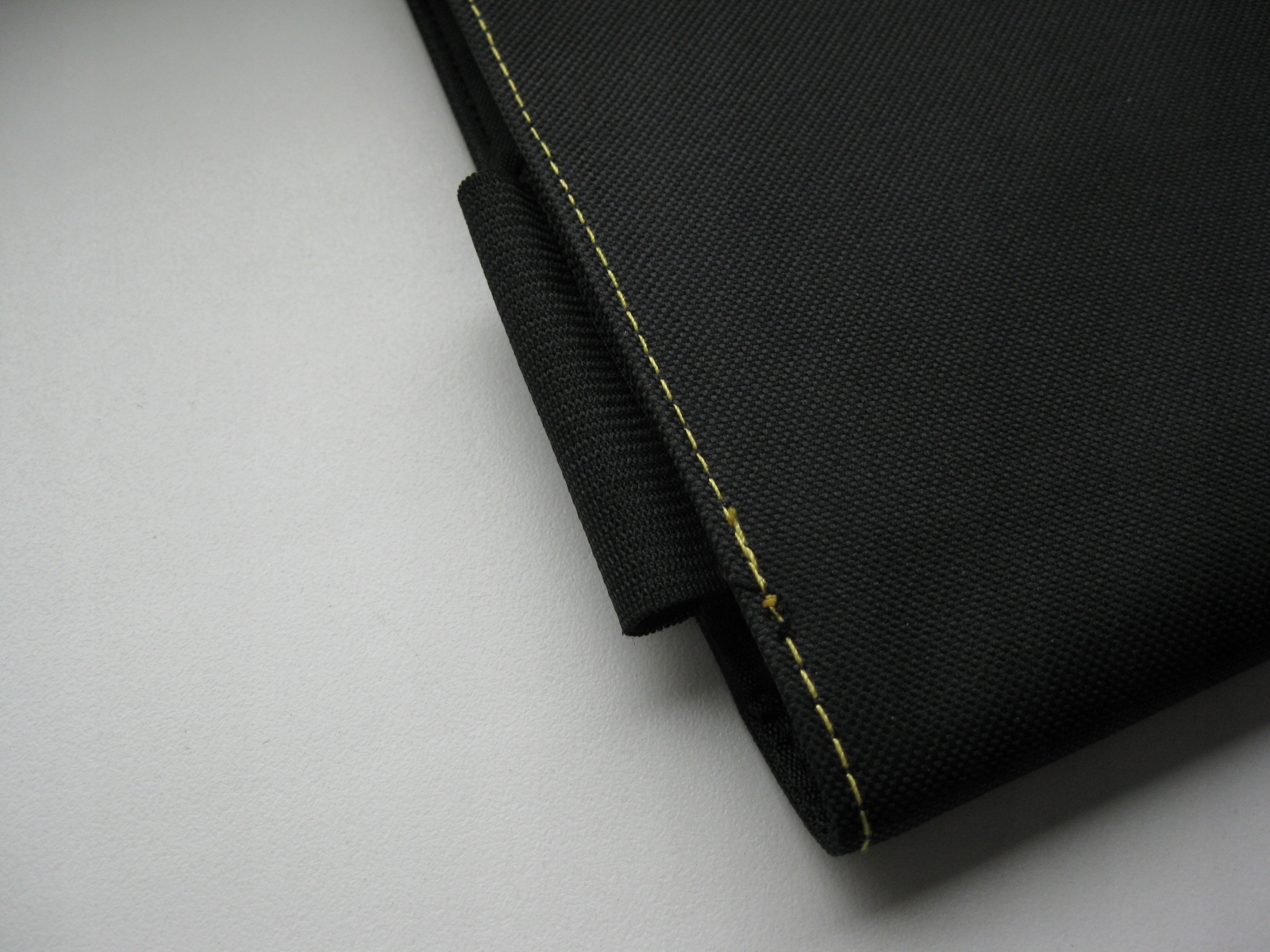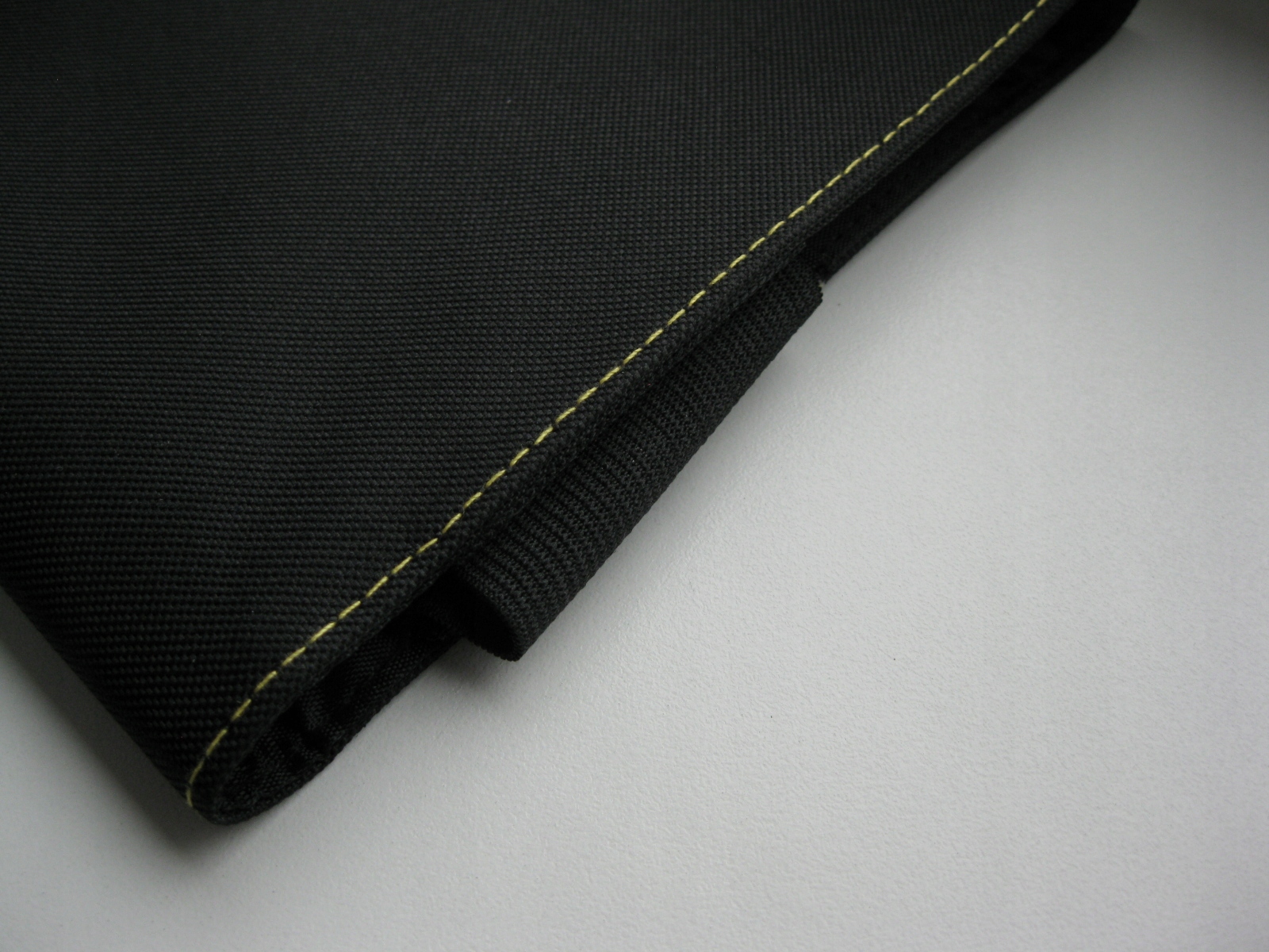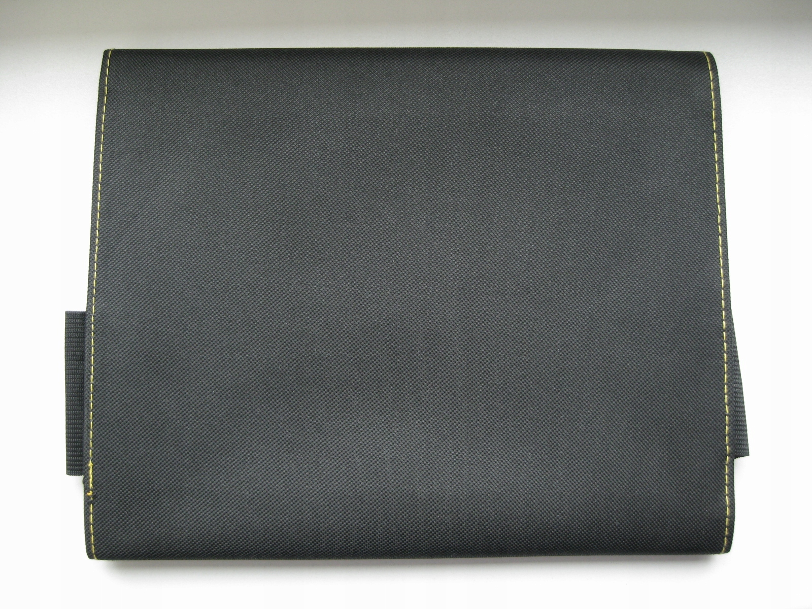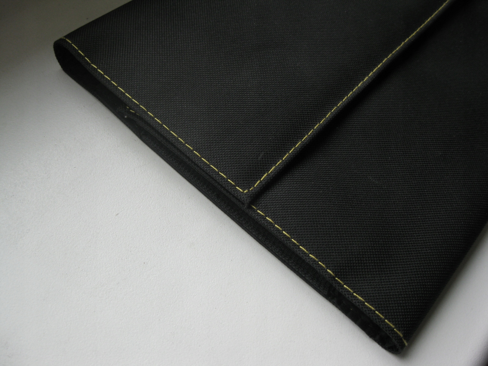 Pięknie wykonanie z czarnego, parcianego materiału, obszytego żółtą nicią