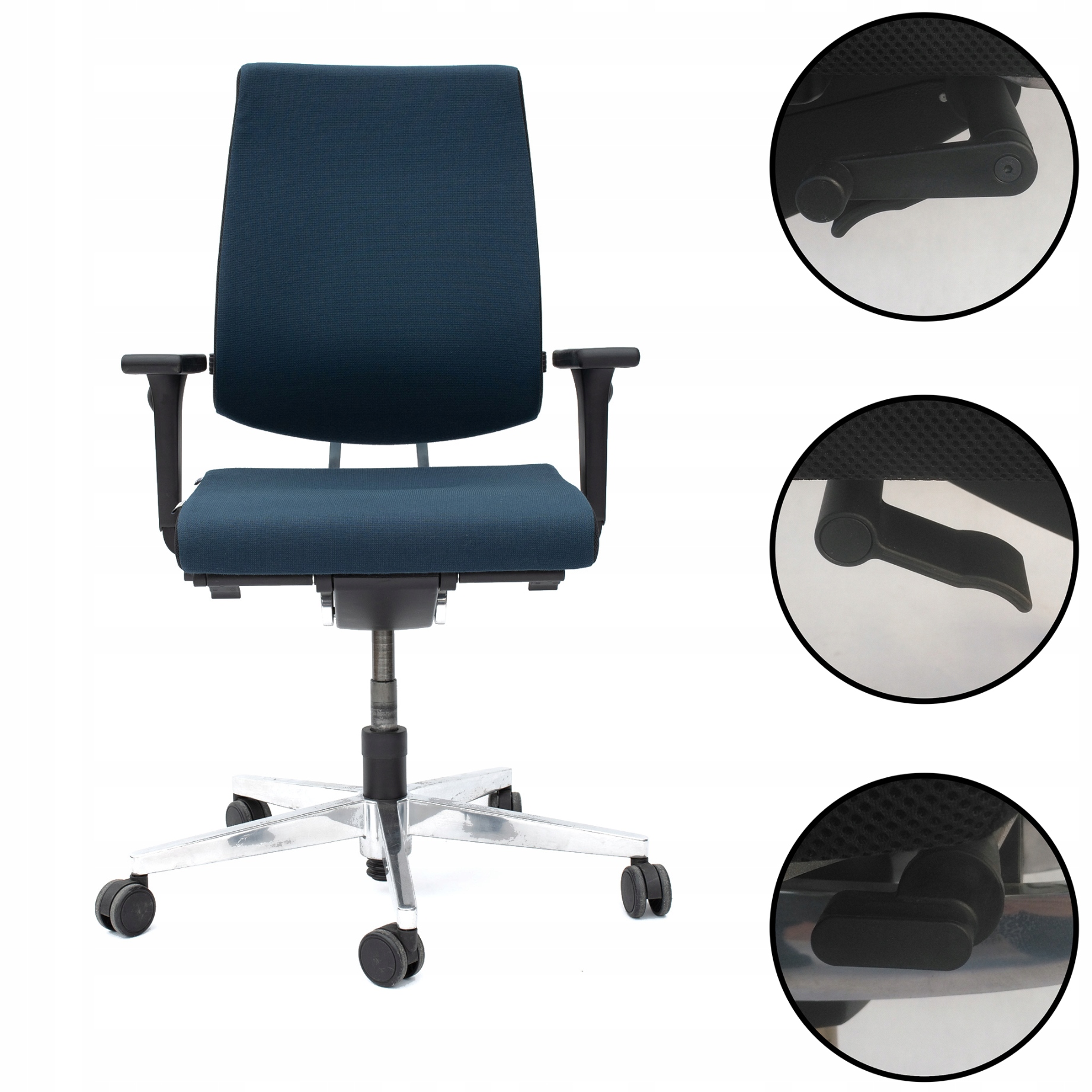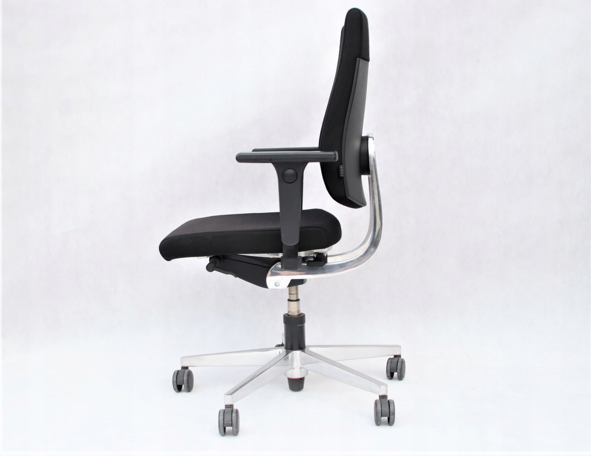 Obrotowe, biurowe krzesło renomowanej niemieckiej firmy Sedus wykonane zostało z wysokiej klasy materiałów, co zapewnia jakość na lata. Dodatkowo krzesło posiada atest zapewniający możliwość pracy przez pełne 24 godziny przy obciążeniu 150 kg. Siedzisko z miękkiej pianki, tapicerowane wytrzymałą tkaniną, idealnie dopasowuje się w czasie siedzenia, zapewniając komfort pracy. Niepodważalnym atutem są regulowane podłokietniki, których ustawienie możesz dostosować do siebie. Noga krzesła w formie pająka wykonana została z lekkiego, wytrzymałego aluminium. Krzesło kręcone nadaje się zarówno do dużego biura, jak i pracy w systemie home office.