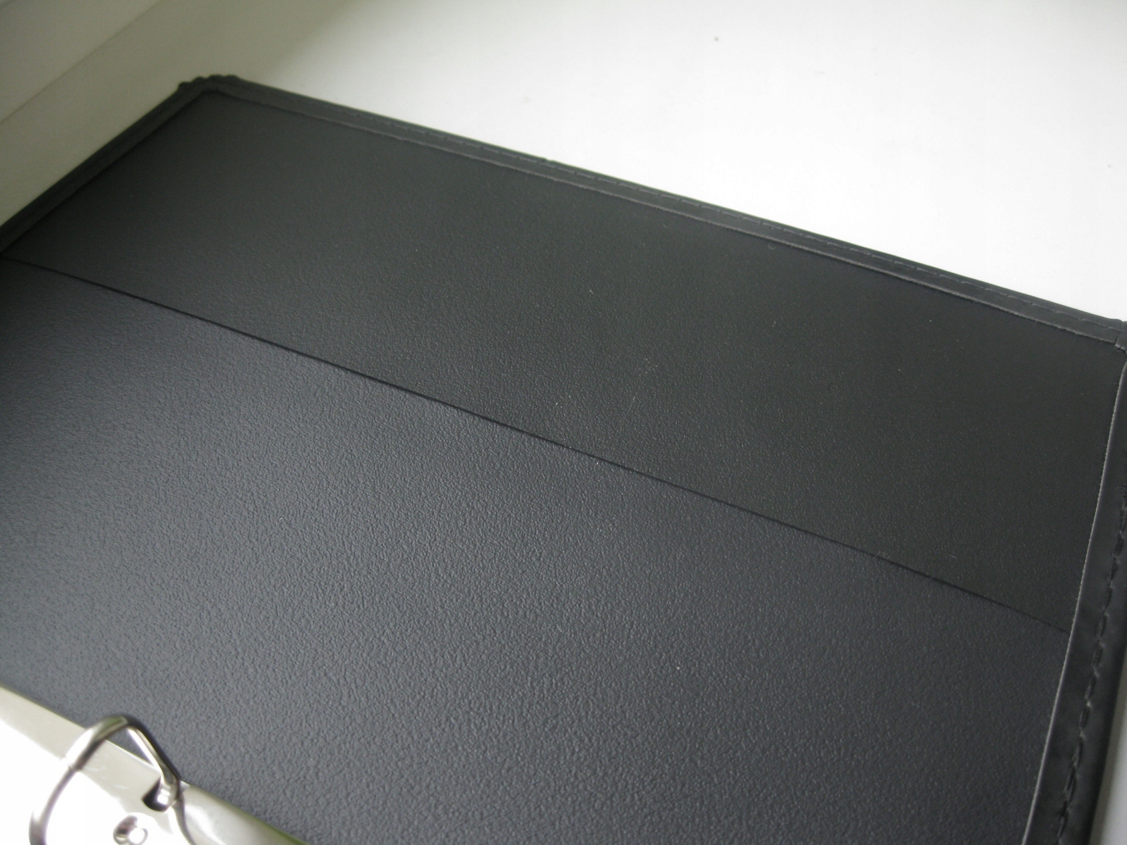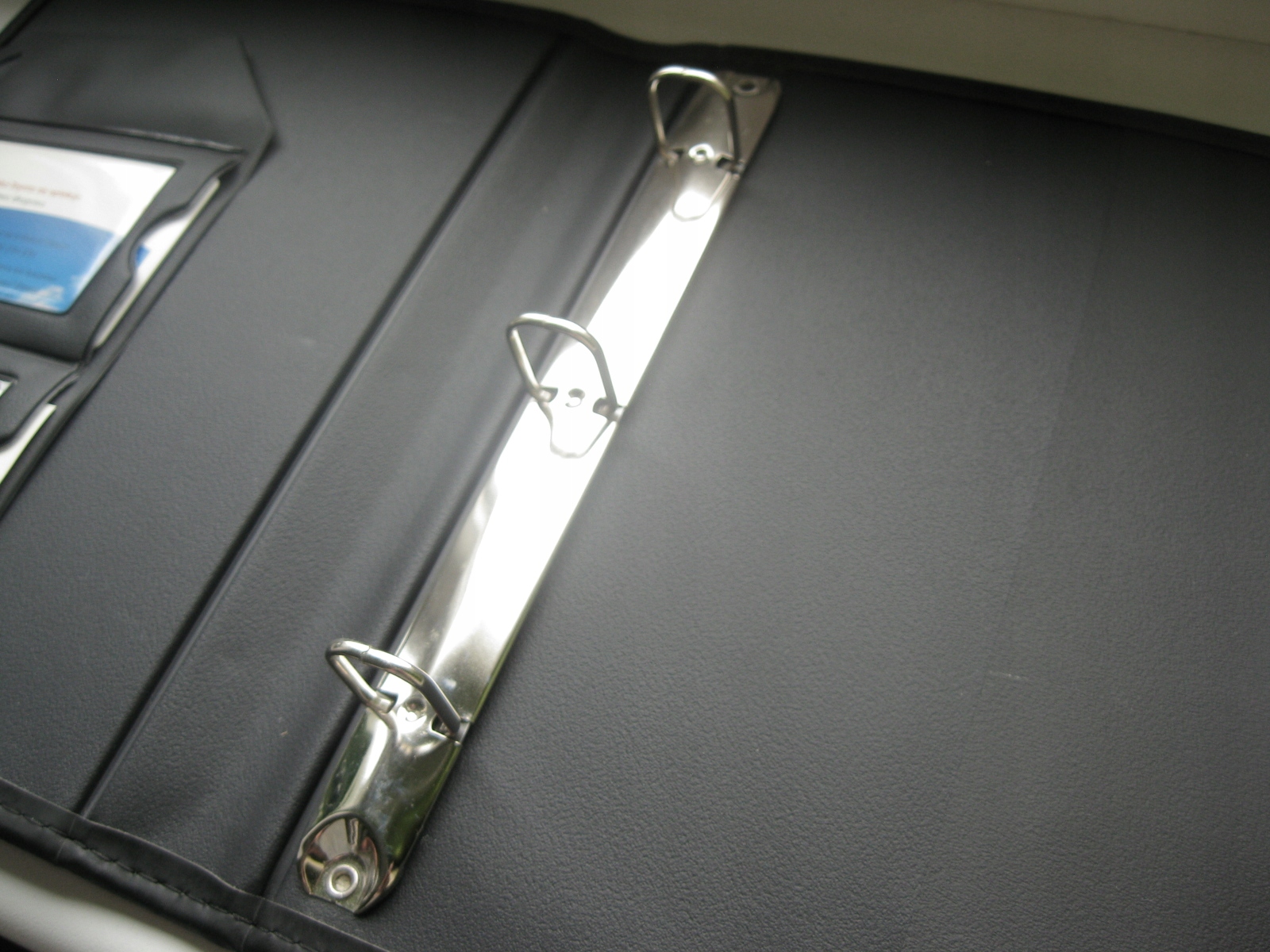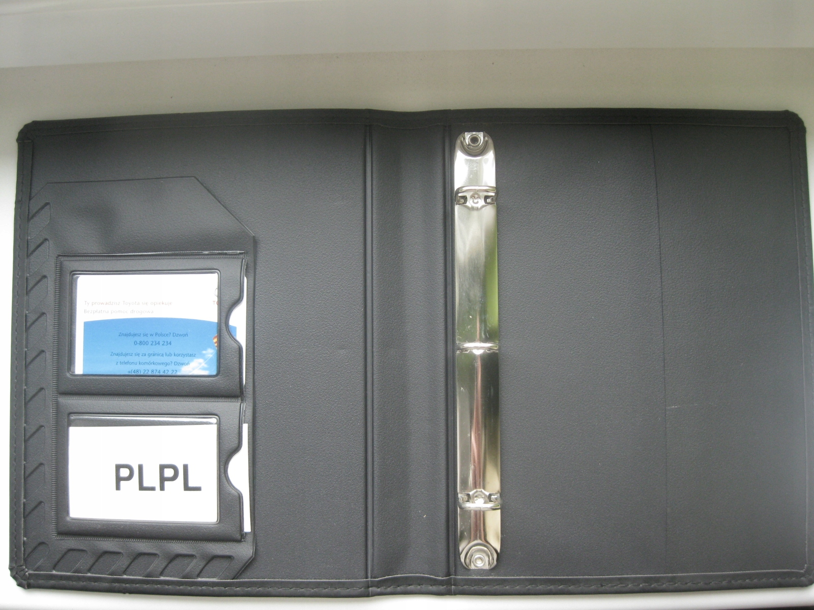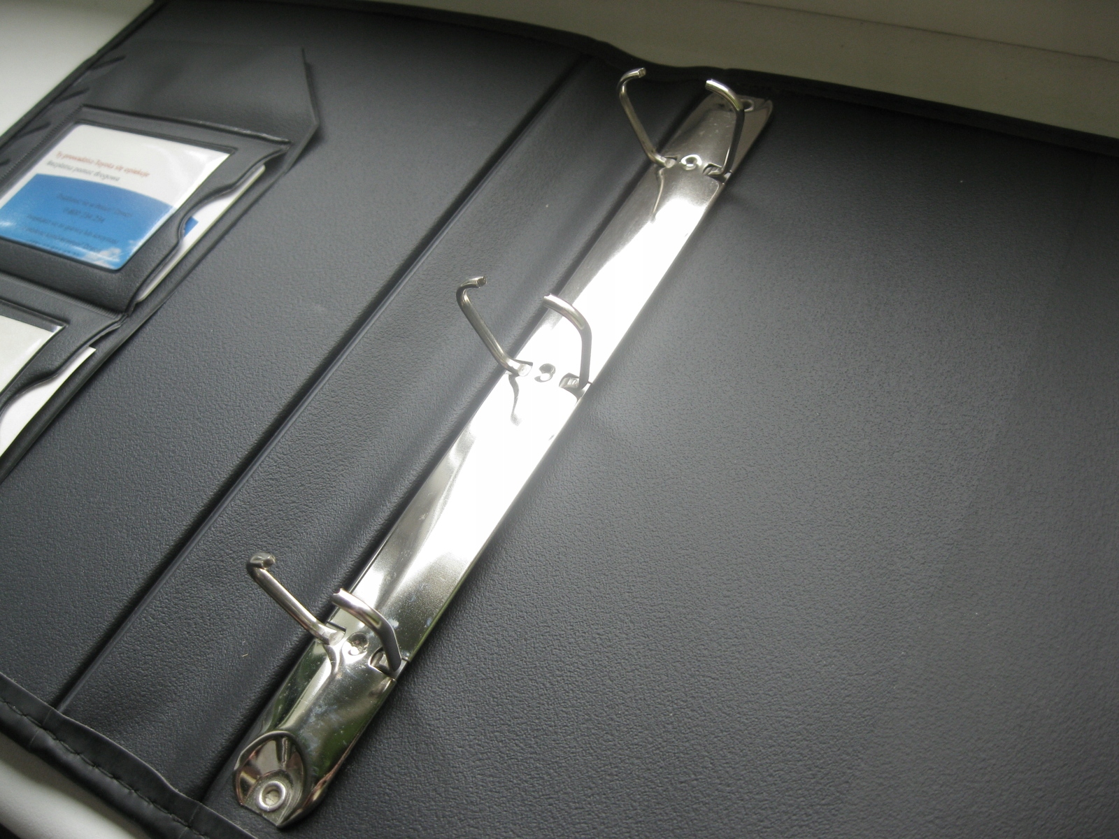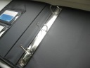 Po otwarciu specjalne kieszonki na wizytówki oraz chromowany segregator