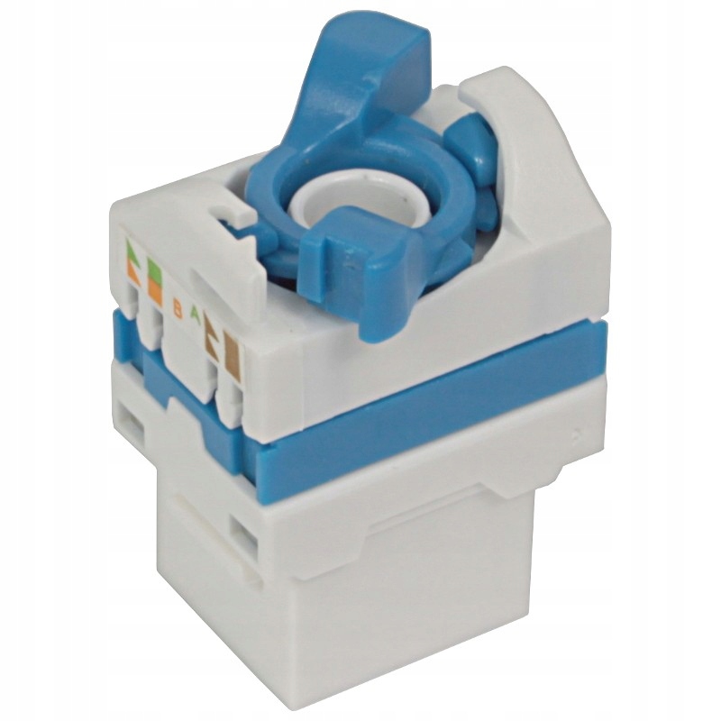 Корпус модуля keystone предназначен для обеспечить параметры передачи. Шлицевые разъемы имеют цветную маркировку в стандарт форма прижимного элемента и защелкивающийся механизм, расположенный в корпусе, обеспечивают прочное соединение и предотвращает случайное отклонение жил от края соединения.