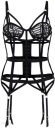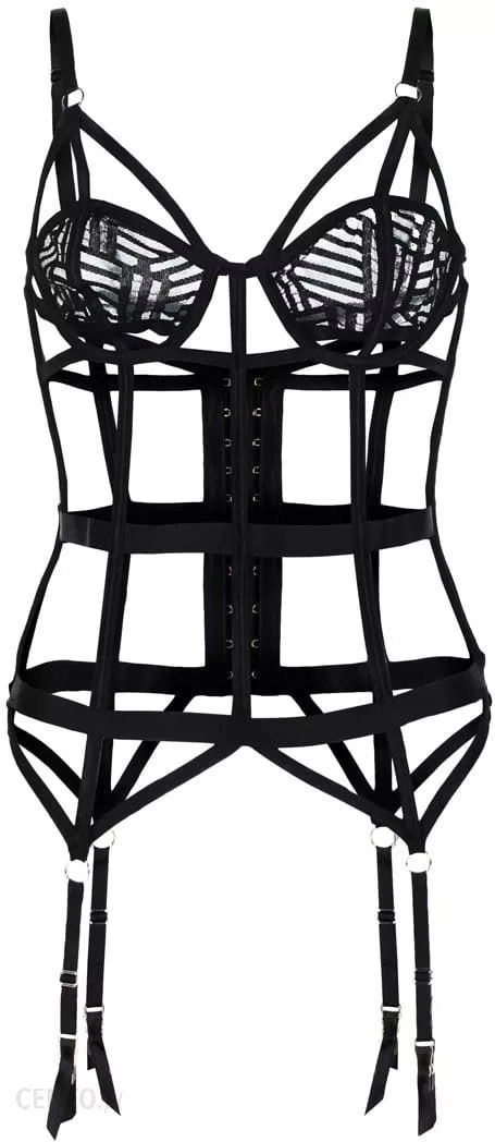 Opis modelu: Gorset ma miękkie miseczki na fiszbinach,, posiadają cięcia pionowe, ramiączka regulowane, pionowe fiszbiny