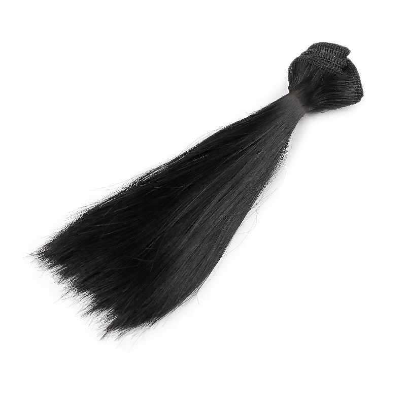Włosy dla lalek Sztuczne włosy proste, w kolorze czarnym Włosy są delikatne, miłe w dotyku Dzięki mocnej górnej lamówce można je łatwo przyszyć lub przykleić Lamówka jest miękka, można ją formować według potrzeby Włosy można skrócić nożyczkami na potrzebną długość