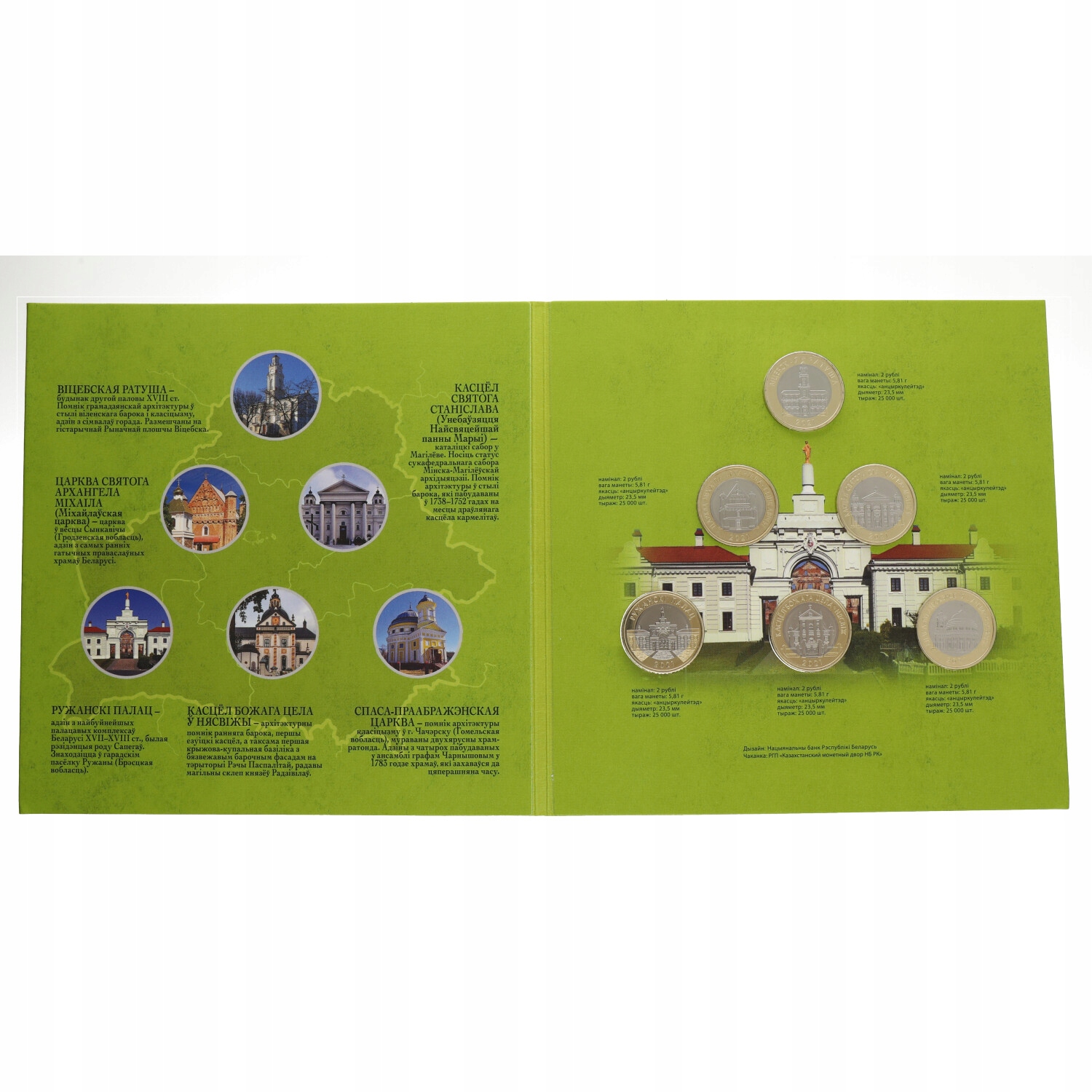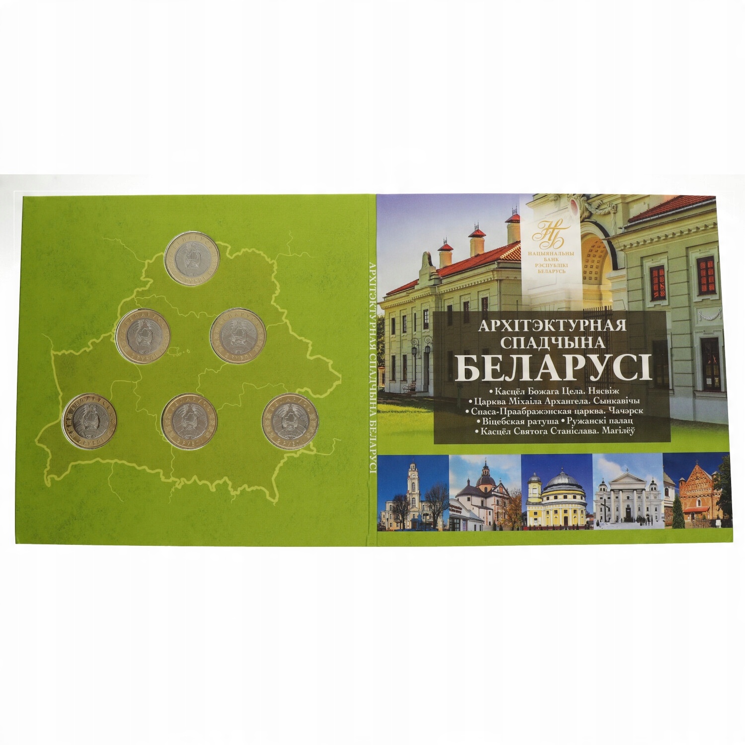 Zestaw monet okolicznościowych z serii „ZABYTKI ARCHITEKTURY BIAŁORUSI” składającym się z 6 bimetalicznych monet