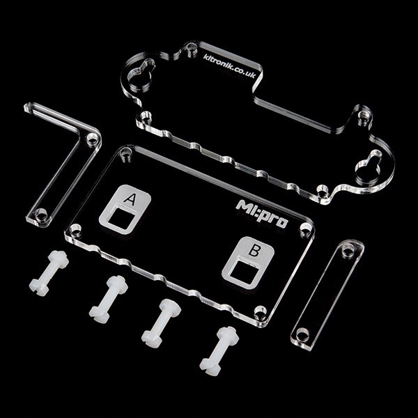 Obudowa przeznaczona dla płytki micro:bit, wykonana z przezroczystego akrylu. Obudowa posiada dwa otwory, co umożliwi montaż do powierzchni przy zachowaniu dostępności do wszystkich przycisków oraz złącz płytki micro:bit. Obudowa wymaga samodzielnego złożenia, wymagany jest niewielki płaski śrubokręt.