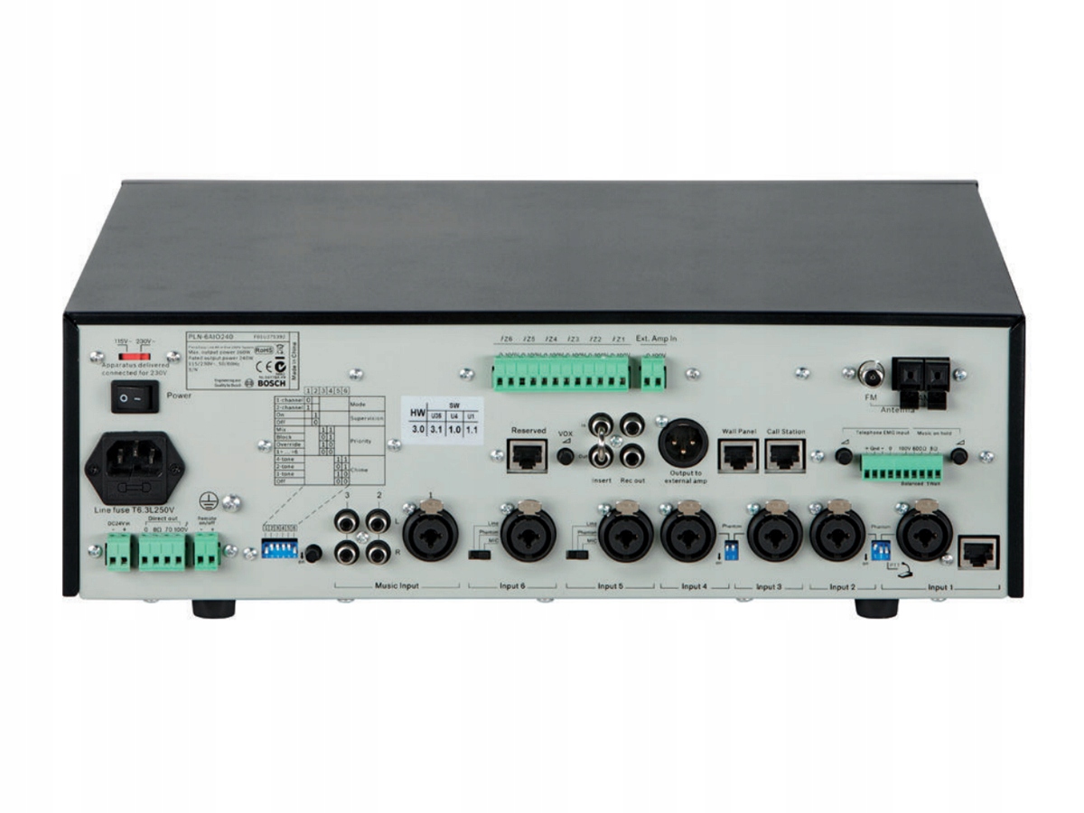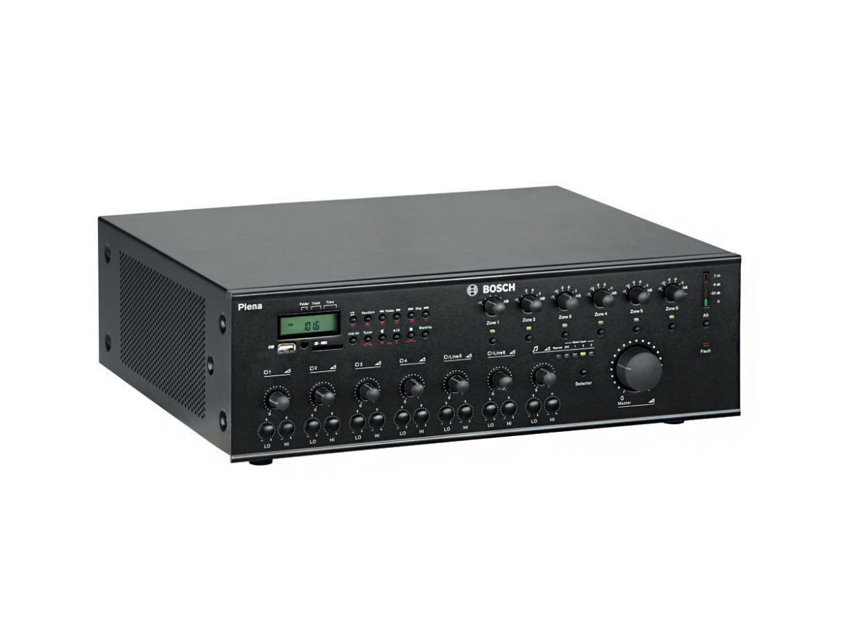 Wbudowany wzmacniacz mocy 240 W jednostki All‑in‑One czyni z systemu kompletne rozwiązanie do obsługi dźwięku jednokanałowego dla dystrybucji muzyki i wywoływania osób. Jednostkę można rozszerzyć o dodatkowy wzmacniacz mocy do pracy 2- kanałowej.