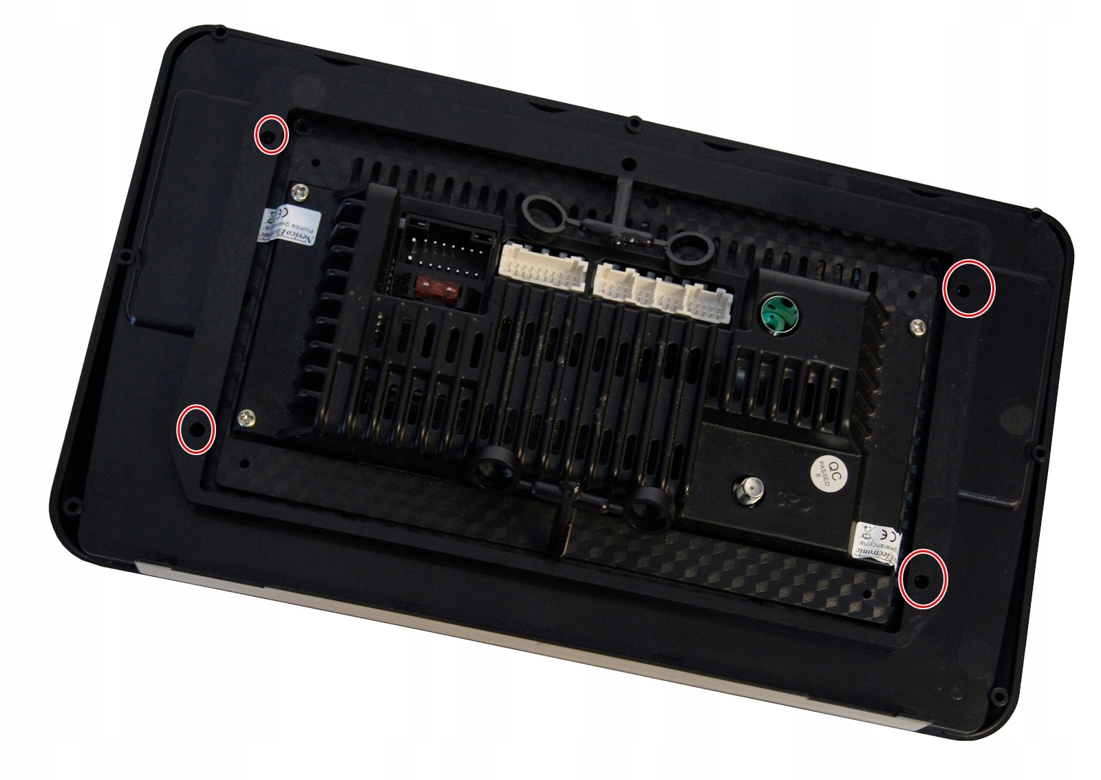 Ramka posiada otwory do przeciągnięcia przewodów zasilających, głośnikowych, oraz do innych urządzeń jak GPS, kamera cofania, kamera DVR).
