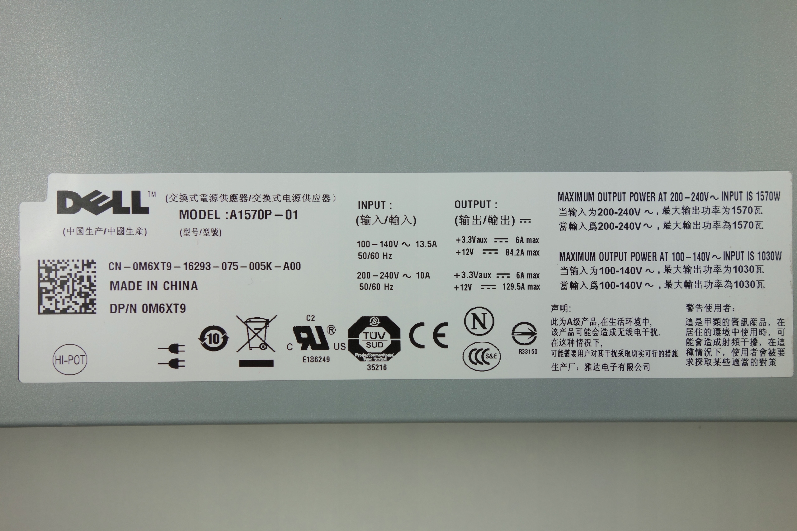 Dell 1570 Watt Power Supply For Poweredge R900