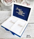 Na zewnątrz pudełka naklejony przestrzenny dekor gołąbki lub serca ( dekor lakierowany w kolorze złotym lub srebrnym) w zależności od wybranego modelu